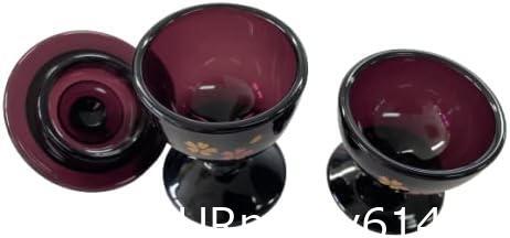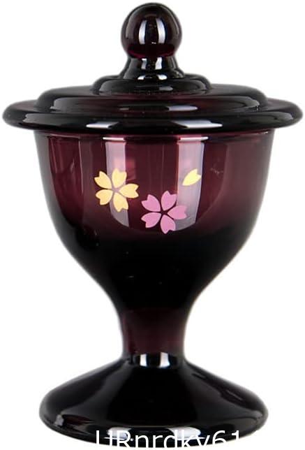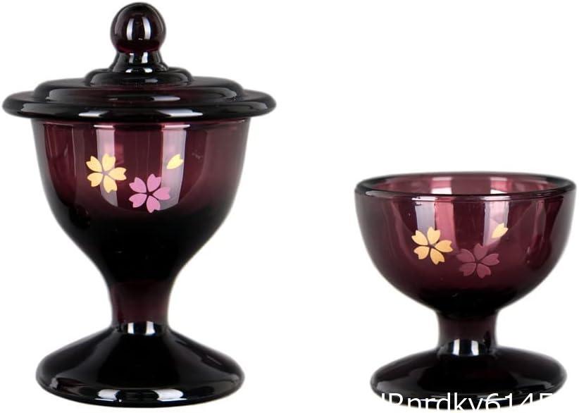 仏具 ガラス仏茶器セット(ご飯・水入れ)桜柄(ワインカラー)TG-02/P-F&TG-01/P-F