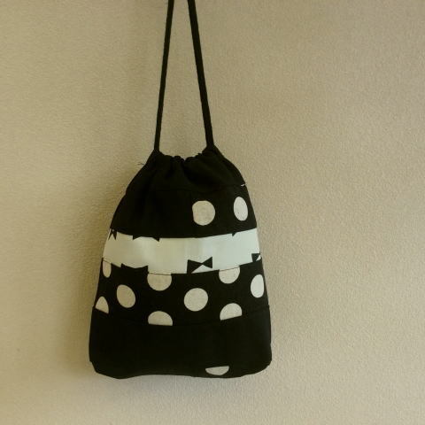 【入学、入園!】450円黒とドットパッチワーク巾着袋 【手作り小物】