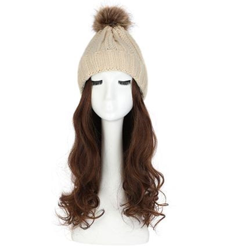 ウィッグ付きニット帽 ニット帽/ベージュ ウィッグカラー/D ロングヘアー イメチェン 髪色チェンジ コスプレ