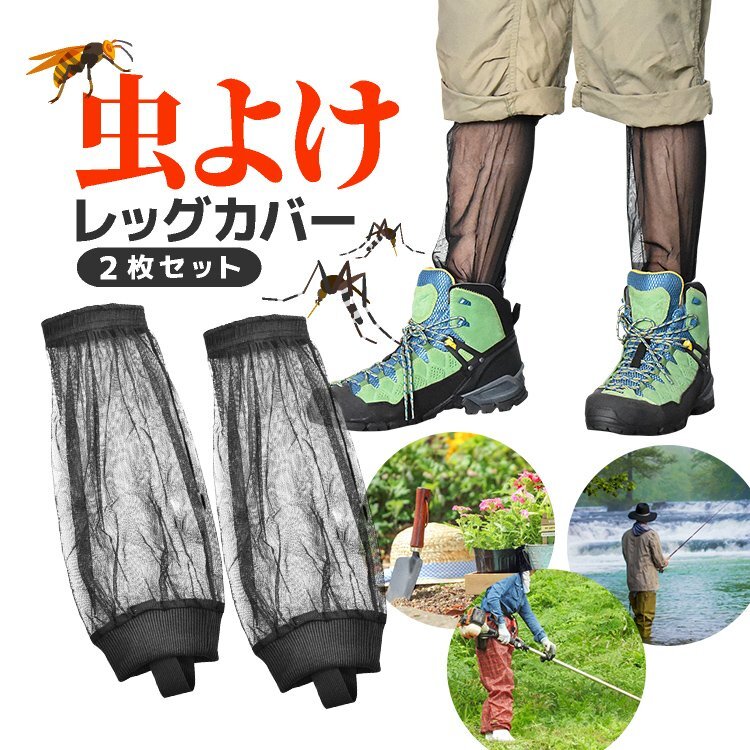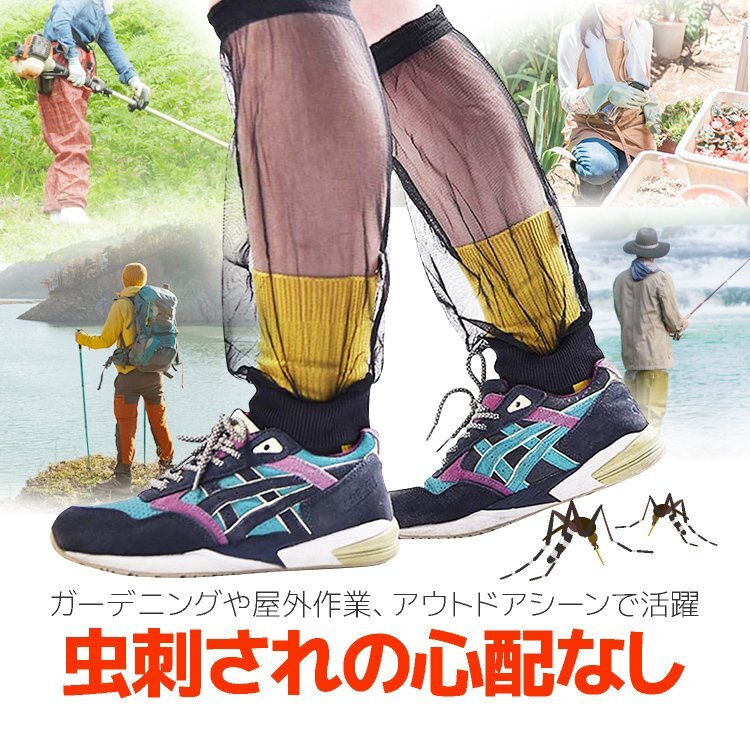 ◆虫よけレッグカバー2枚セット 虫除け足カバー 男女兼用 丸洗いOK 裾紐付き 高通気メッシュ素材 ガーデニング/農作業/屋外作業/アウトドアの虫刺され対策に MUYLG02