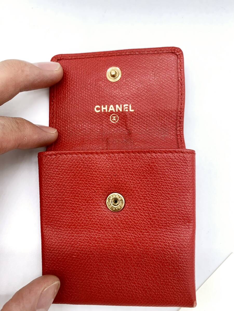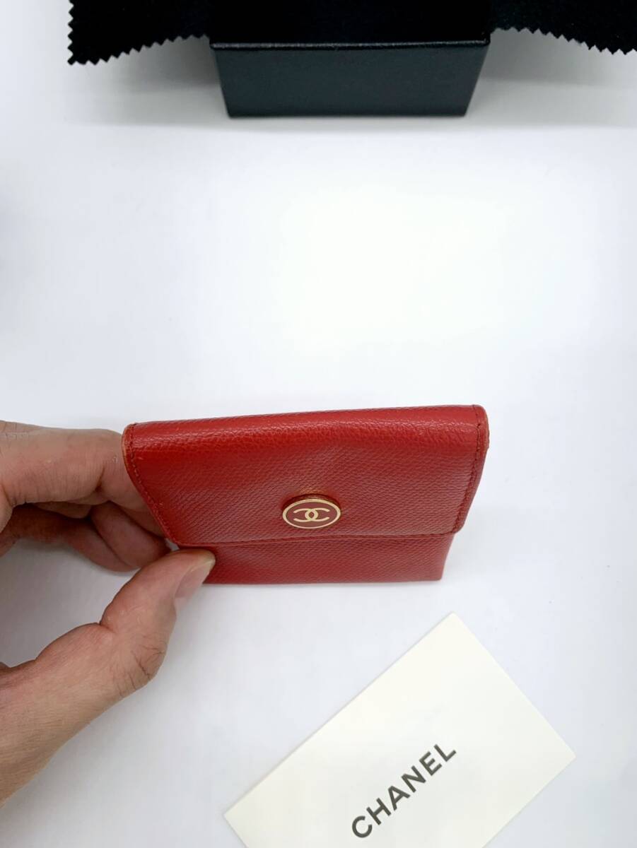 CHANEL シャネル コインケース レッド 赤 レザー ココボタン 小銭入れ 小物入れ ウォレット レディース
