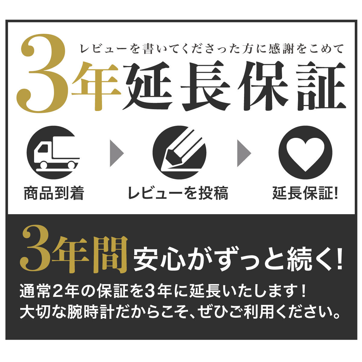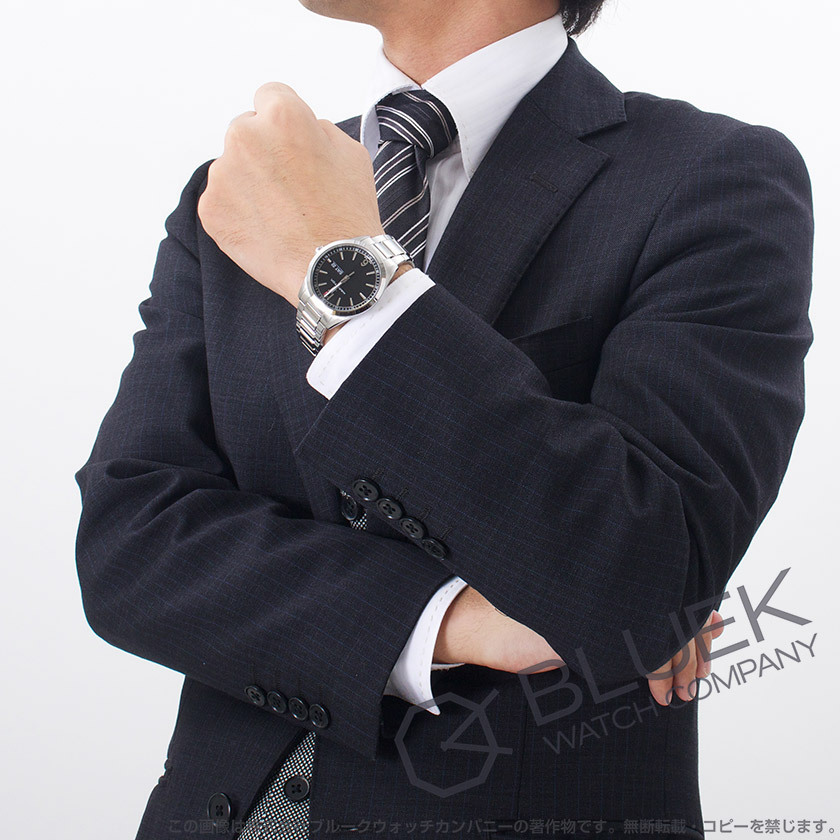 艶なし(一部艶あり)のシルバーステンレスケース・艶ありのシルバーステンレスベゼル・ギョーシェ模様が入ったブラック文字盤・蛍光塗料を施したシルバーの指針・アラビアとバーインデックス・12時位置にブランドロゴ・3時位置に曜日と日付表示・艶なし(一部艶あり)シルバーの3連ブレス・プッシュ式の両開きバックル・スクリューバック・バックル部分、裏蓋にブランドロゴ 【入荷時期によりバックルの仕様、もしくは裏蓋の防水表記が異なる場合が御座います】 |