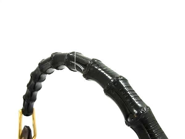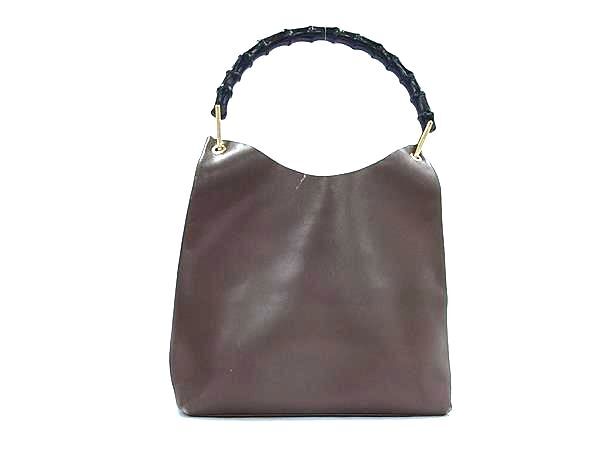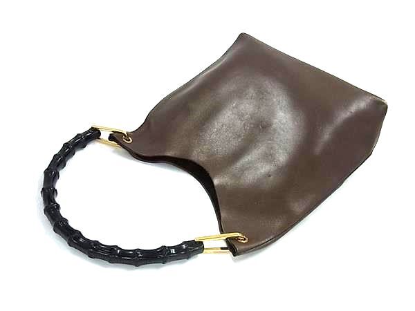 1円 GUCCI グッチ 001 2058 1880 バンブー レザー ワンハンドル ハンドバッグ ショルダー レディース ブラウン系×ブラック系 FV0635