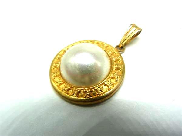 ■美品■ CELINE セリーヌ ネックレストップ ペンダントトップ チャーム アクセサリー レディース ゴールド系×アイボリー系 DI4052
