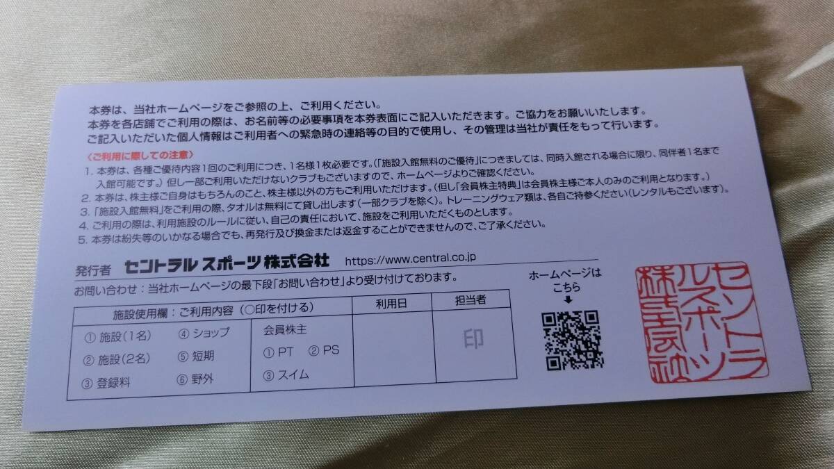1a■株主優待 セントラルスポーツ 1枚★ジム!運動!ダイエット?★送料85円~