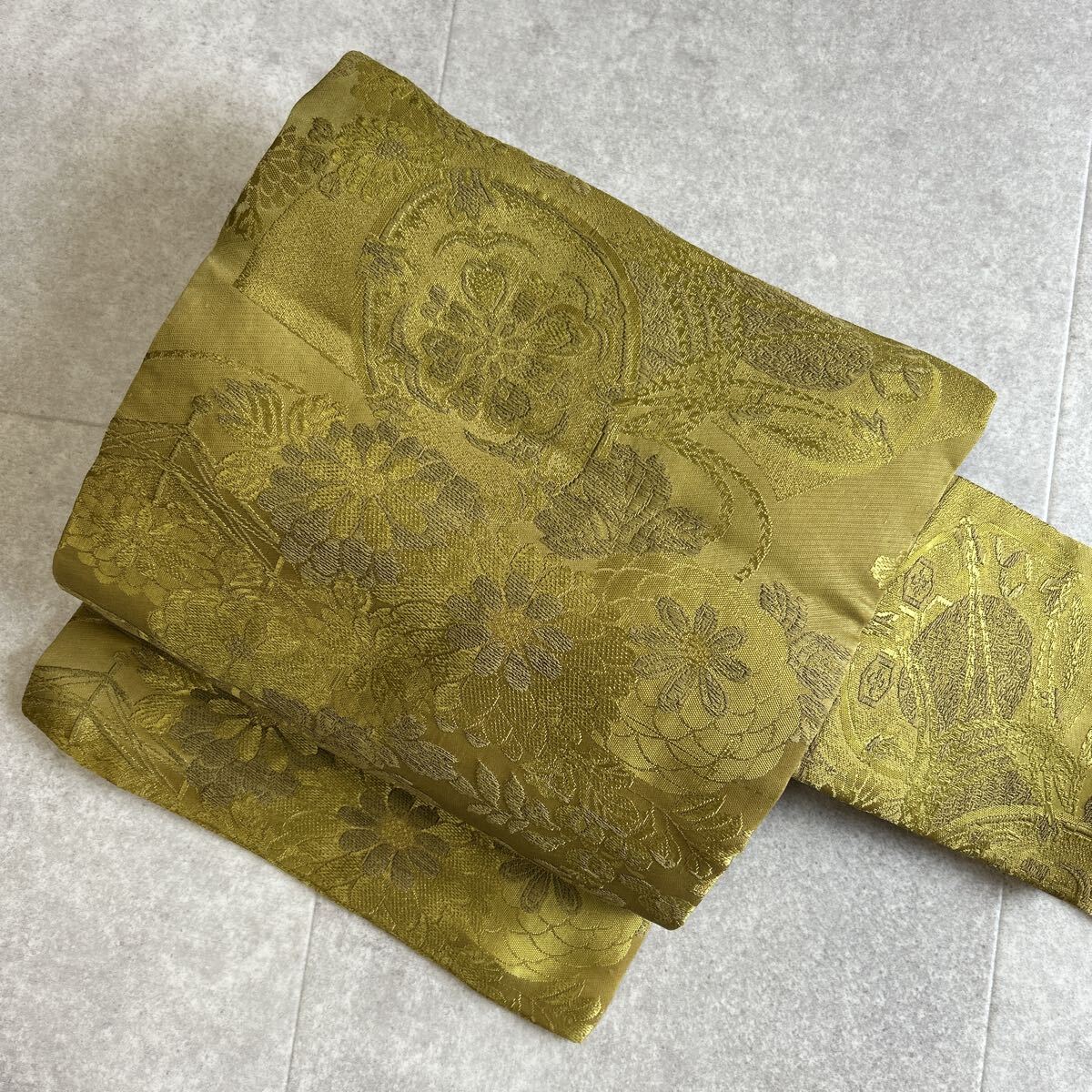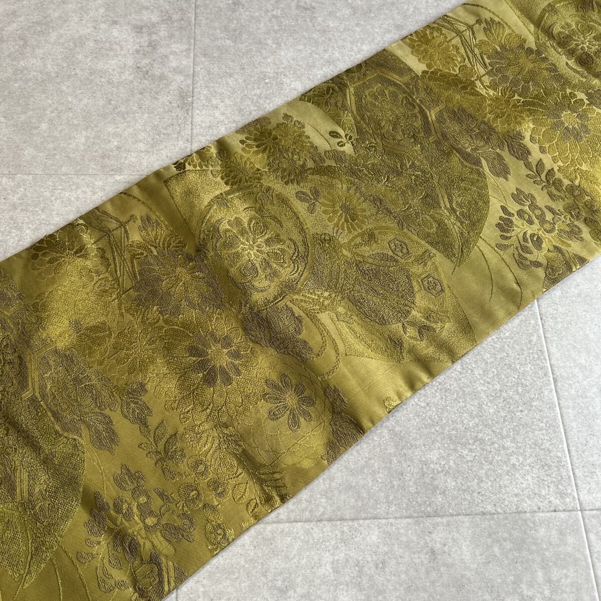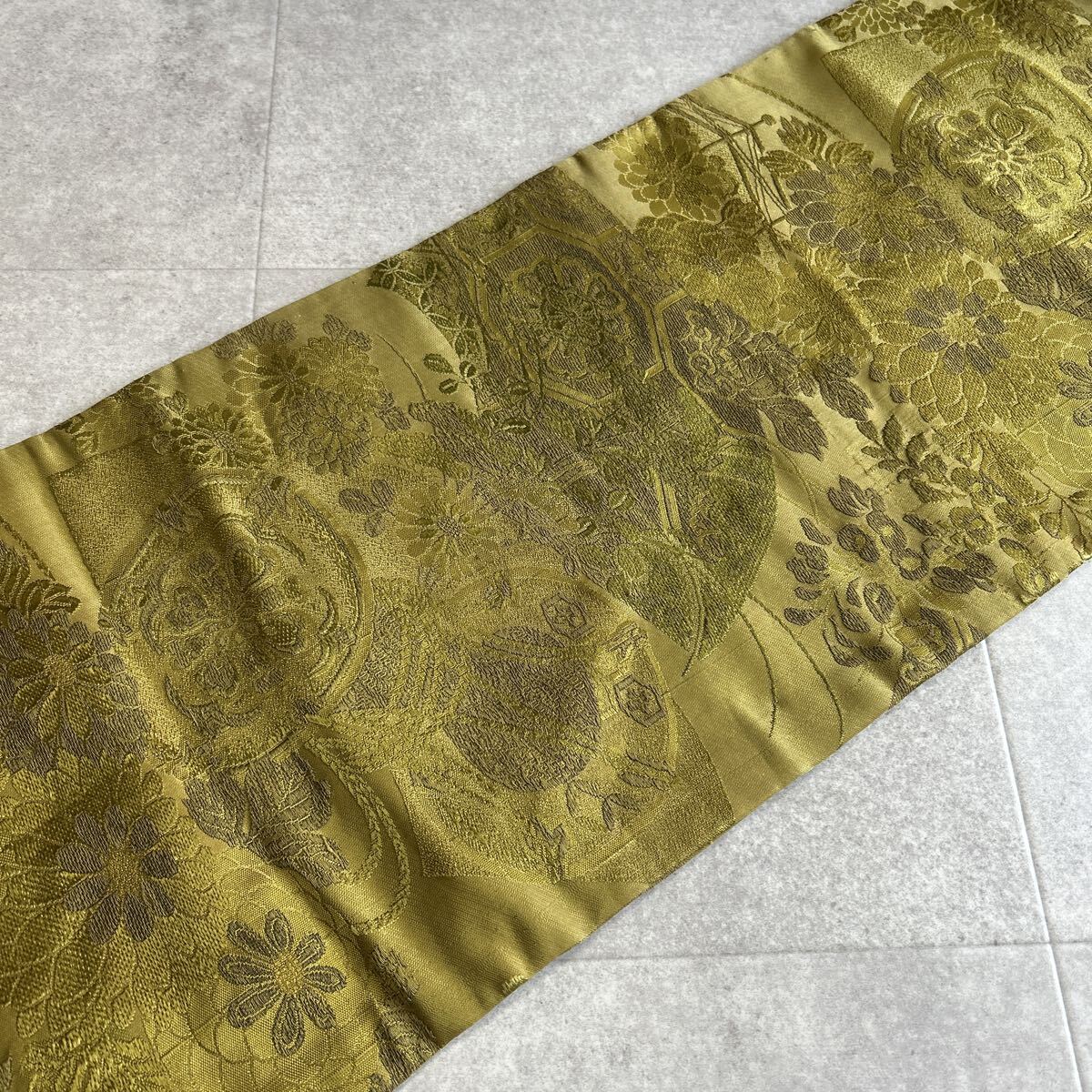 アンティーク 名古屋帯 唐織 花 着物 昭和レトロ 大正ロマン モダン 和洋折衷コーデ リメイク 25こ01-06t
