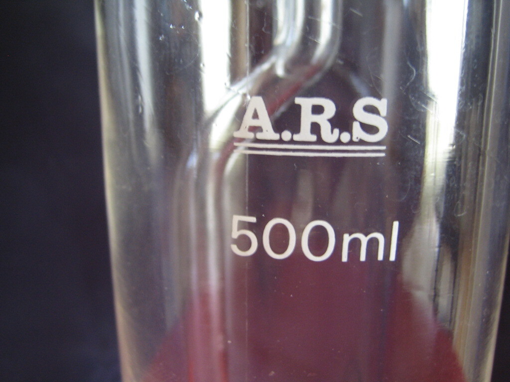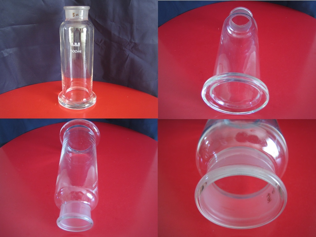 USED ☆ ガラス製 多孔質板フィルター付き ガス洗浄瓶 500mL ☆ アンティーク実験器具