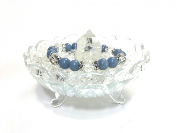 エンジェライトは非常に優しい力を持った石。人生において大切なものを気づかせ、そうした大切なものに対して広い愛の心を持つよう、持ち主を導いてくれると言われいます。