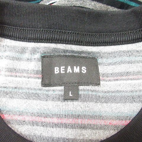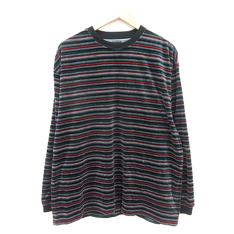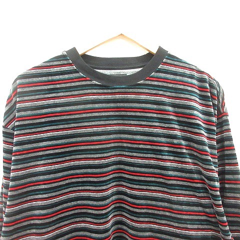 ビームス BEAMS カットソー Tシャツ クルーネック ボーダー 長袖 ベロア L グレー /MN メンズ