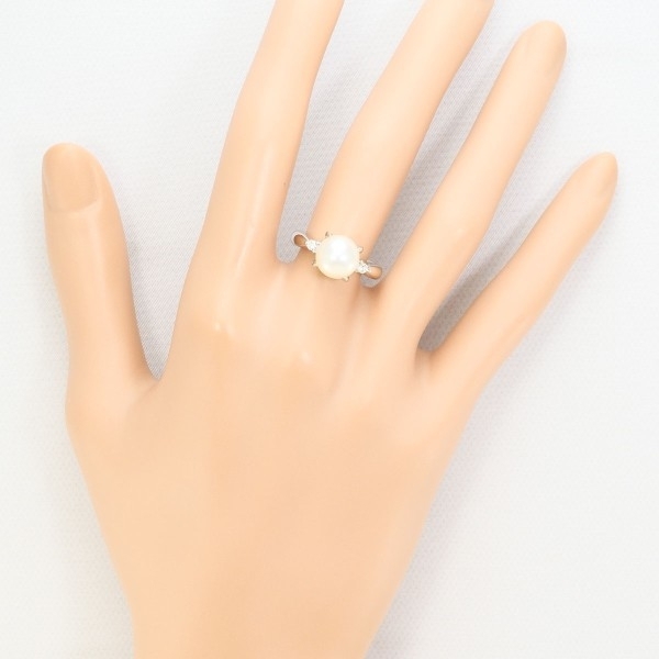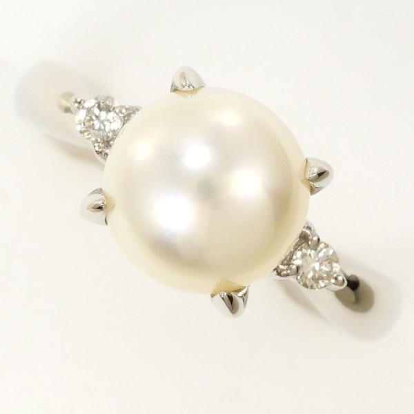 PT850 リング 指輪 9号 パール(真珠) 約9mm ダイヤ 0.08 総重量約8.4g 中古 美品 送料無料 | |