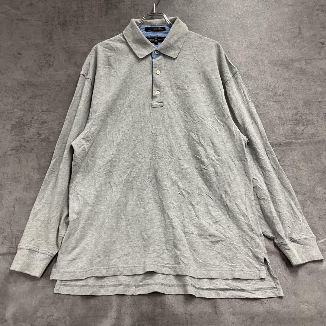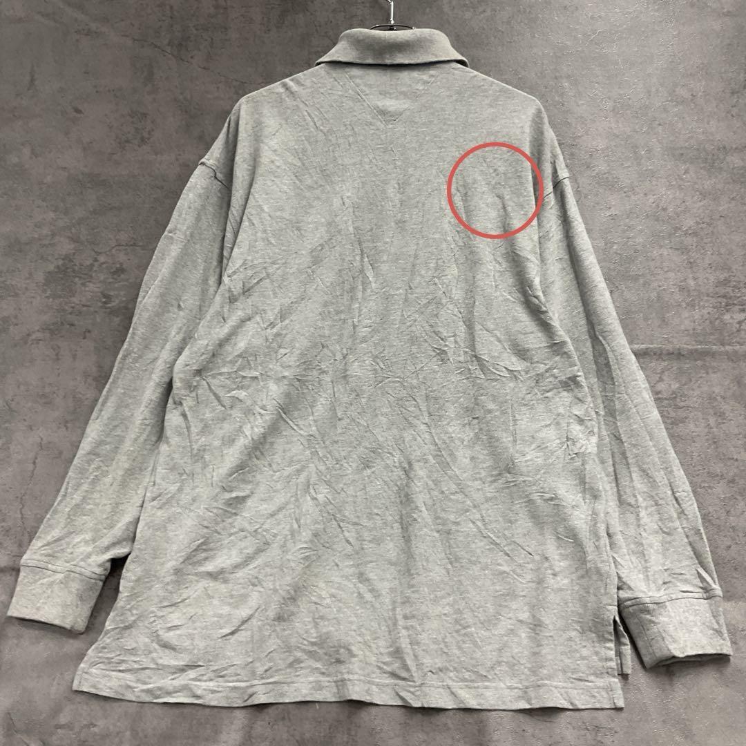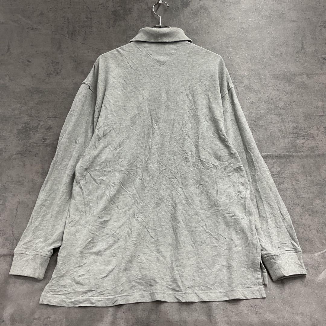落ち着いたグレーのカラーに胸元のフラッグ刺繍が映えるトミーヒルフィガーゴルフの長袖ポロシャツです。スポーツシーンやカジュアルなタウンユースにも最適な一枚。古着にご理解のある方におすすめします。