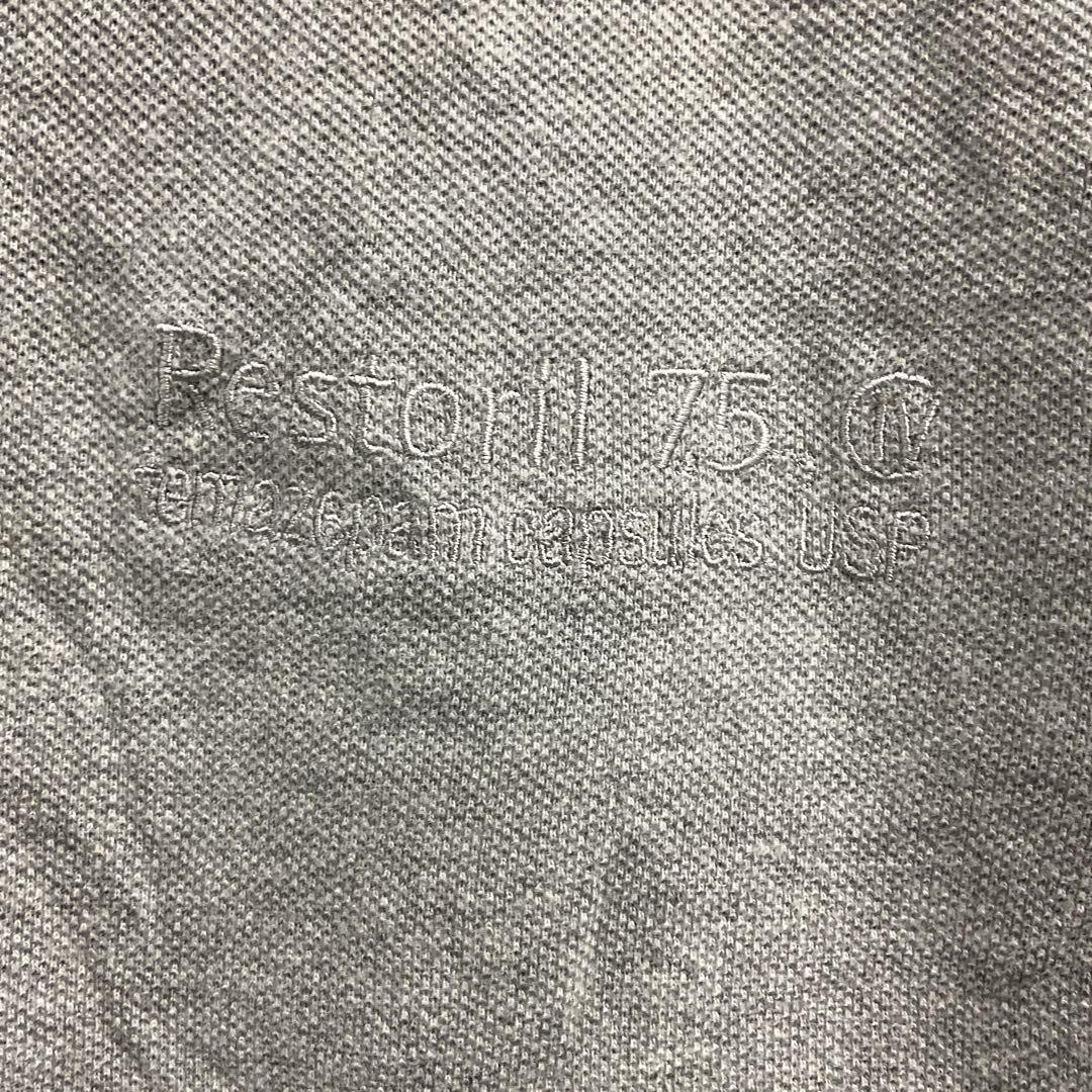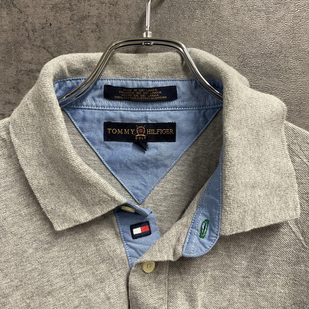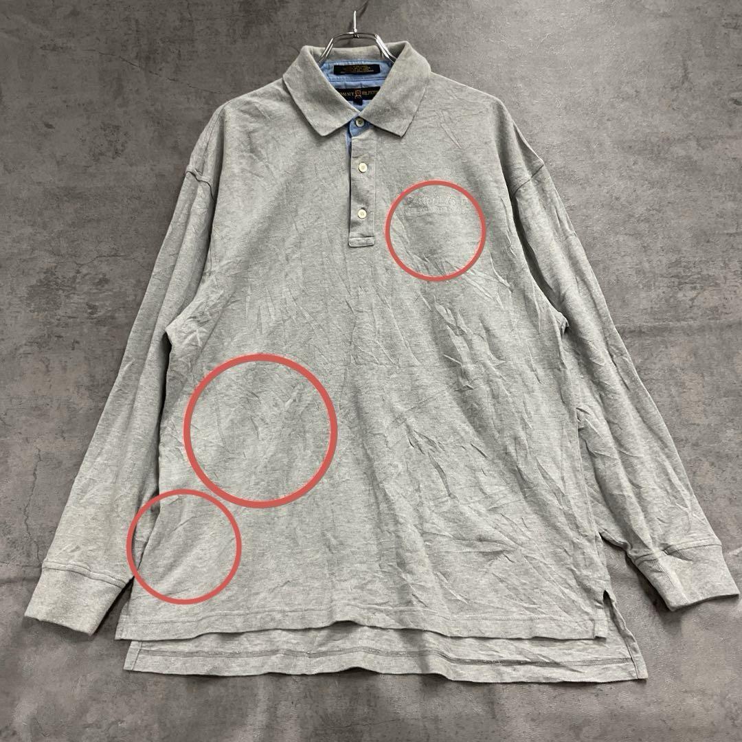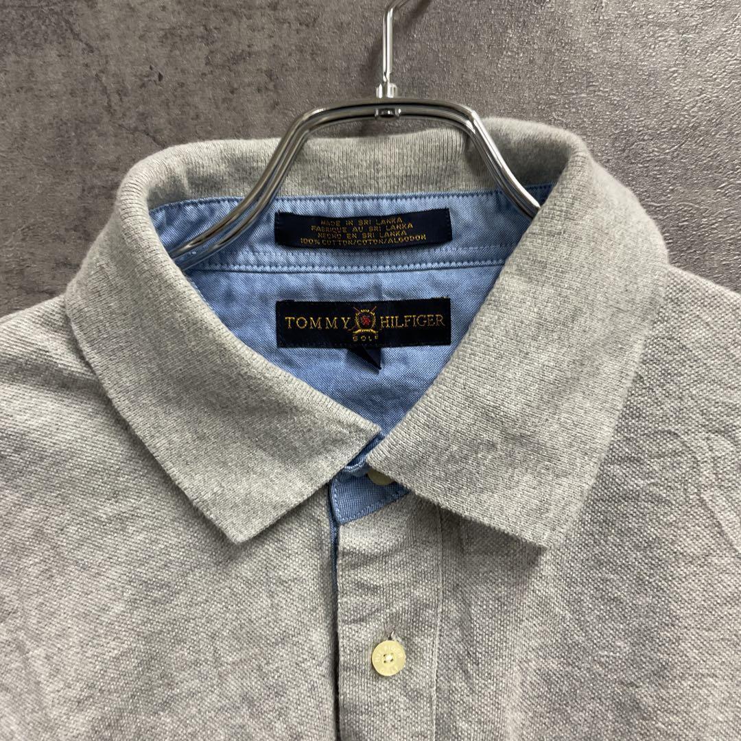 落ち着いたグレーのカラーに胸元のフラッグ刺繍が映えるトミーヒルフィガーゴルフの長袖ポロシャツです。スポーツシーンやカジュアルなタウンユースにも最適な一枚。古着にご理解のある方におすすめします。
