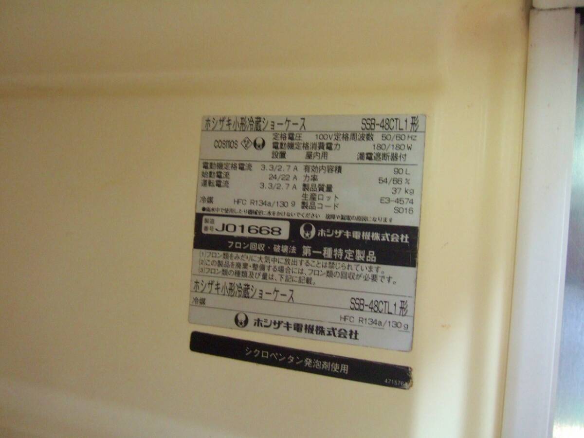 ホシザキ小型冷蔵ショーケース SSB-48CTL スリム 幅48.5cm 簡易動作確認済 容積90L HOSHIZAKI 飲食店 業務用 冷蔵庫
