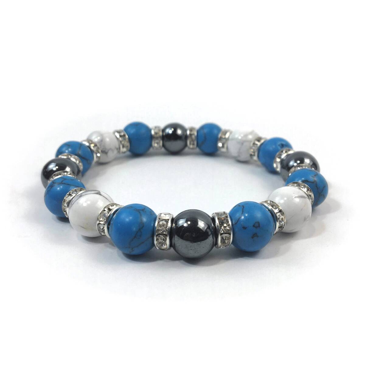 ヘマタイト×ハウライト×ターコイズ パワーストーン ブレスレット (ロンデル: シルバー) 10mm メンズ・レディース