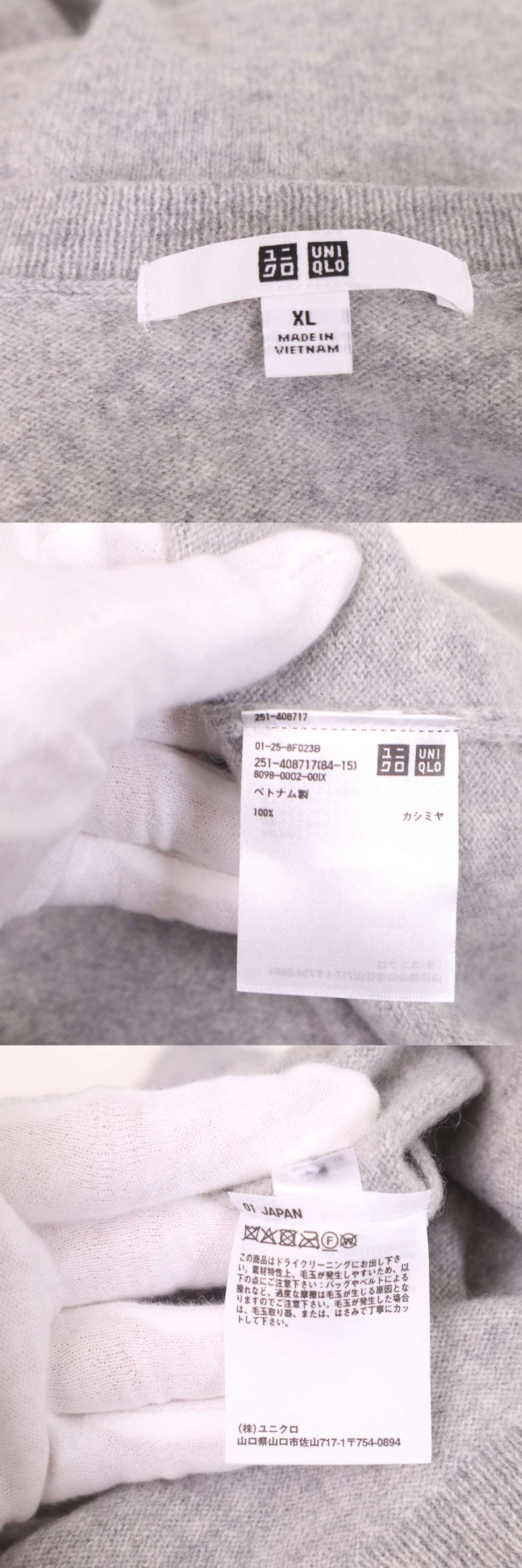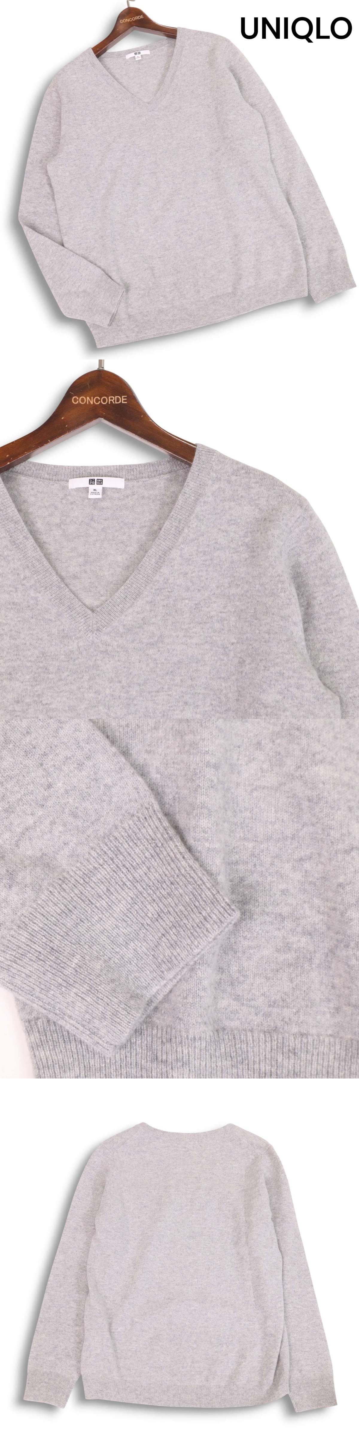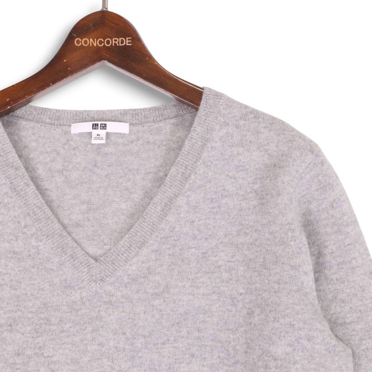 UNIQLO ユニクロ 秋冬 高級 カシミヤ100%♪ Vネック セーター ニット Sz.XL レディース グレー 大きいサイズ