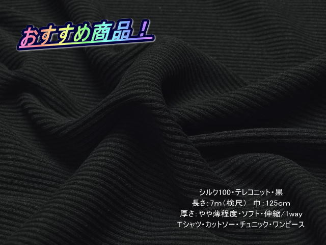 ●○シルク100 テレコニット やや薄 ソフト 1way 黒 7m○●