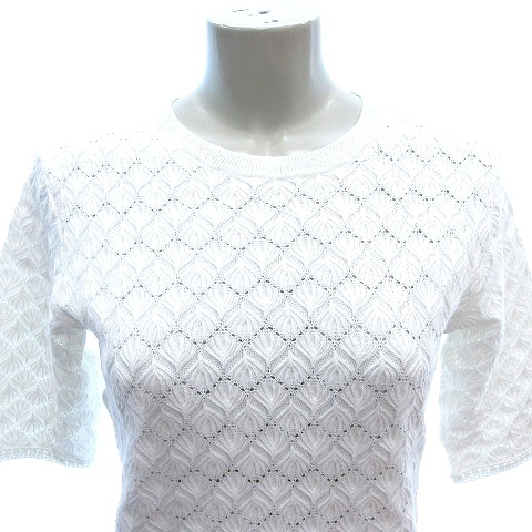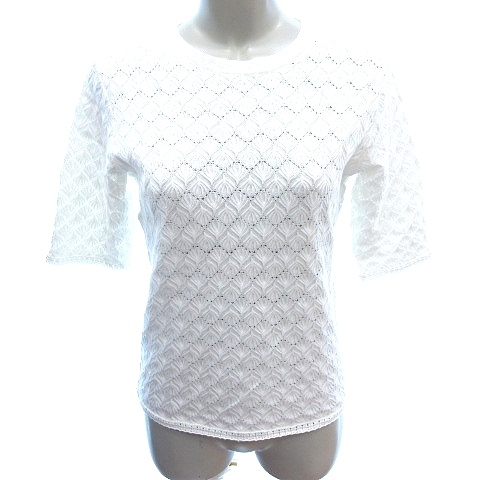 イエナ IENA ニット カットソー かぎ編み 五分袖 白 ホワイト /AU レディース