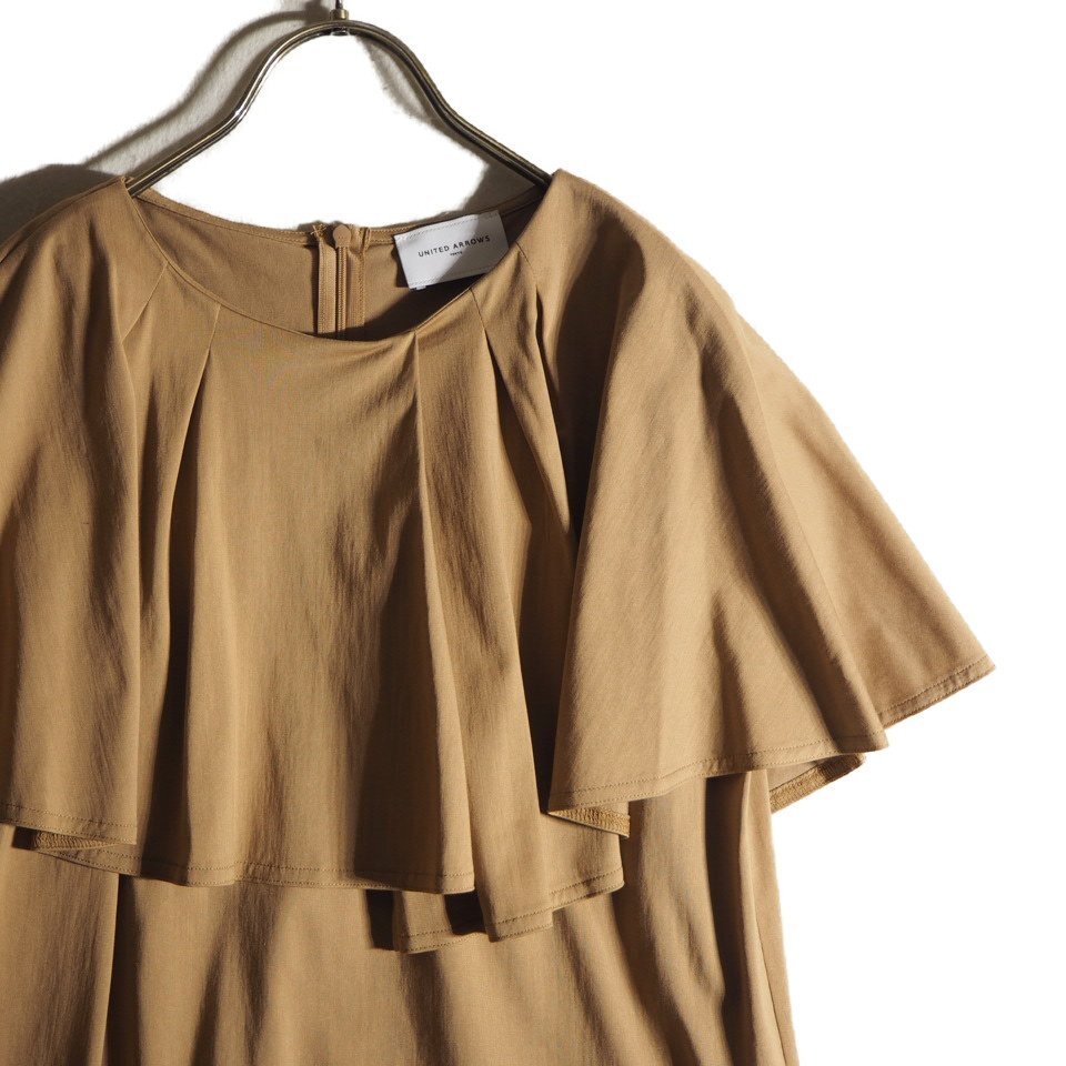 R2509f7 ▼UNITED ARROWS ユナイテッドアローズ▼ 新品同様 コットンナイロン プルオーバー ティアード トップス ベージュ ブラウス 春夏