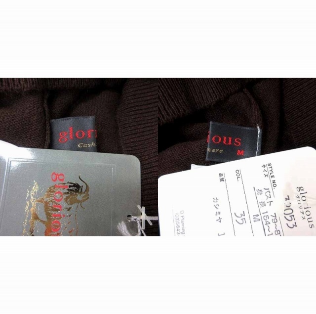 未使用品 グロリアス Glorious ニット カットソー タートルネック 長袖 カシミヤ M 茶 ブラウン /YK レディース