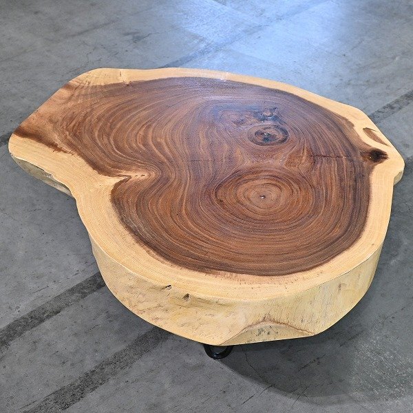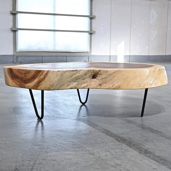 新品 未使用 東谷 5万「JW-631」ローテーブル モンキーポッド一枚板 丸太 輪切り ラウンド 無垢 異素材 コーヒー センター AZUMAYA