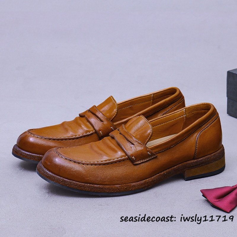 定価13万超*メンズシューズ 入手困難 高級牛革 レザーシューズ 新品 ビジネスシューズ 超希少 職人手作り 紳士靴 本革 ブラウン 24.5cm