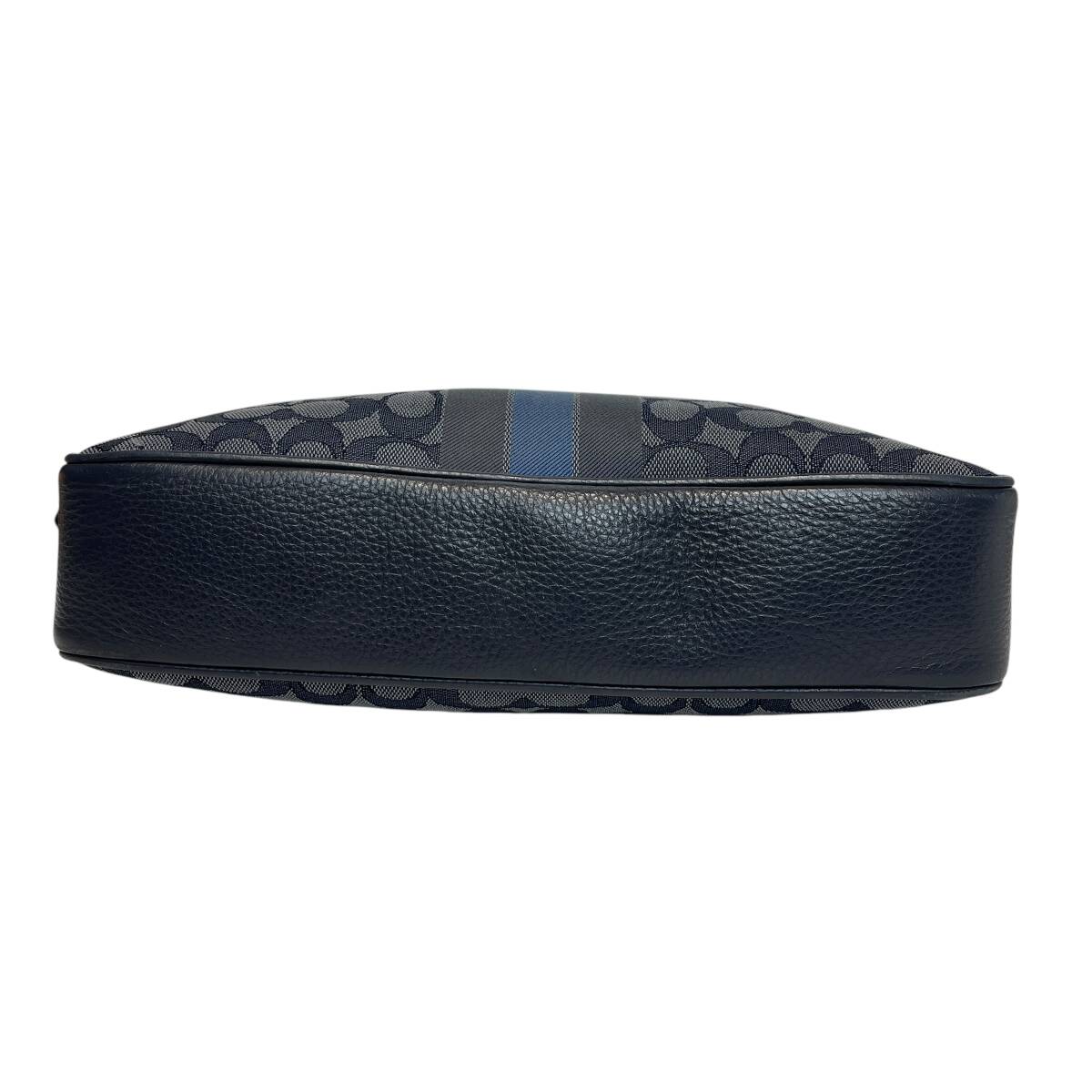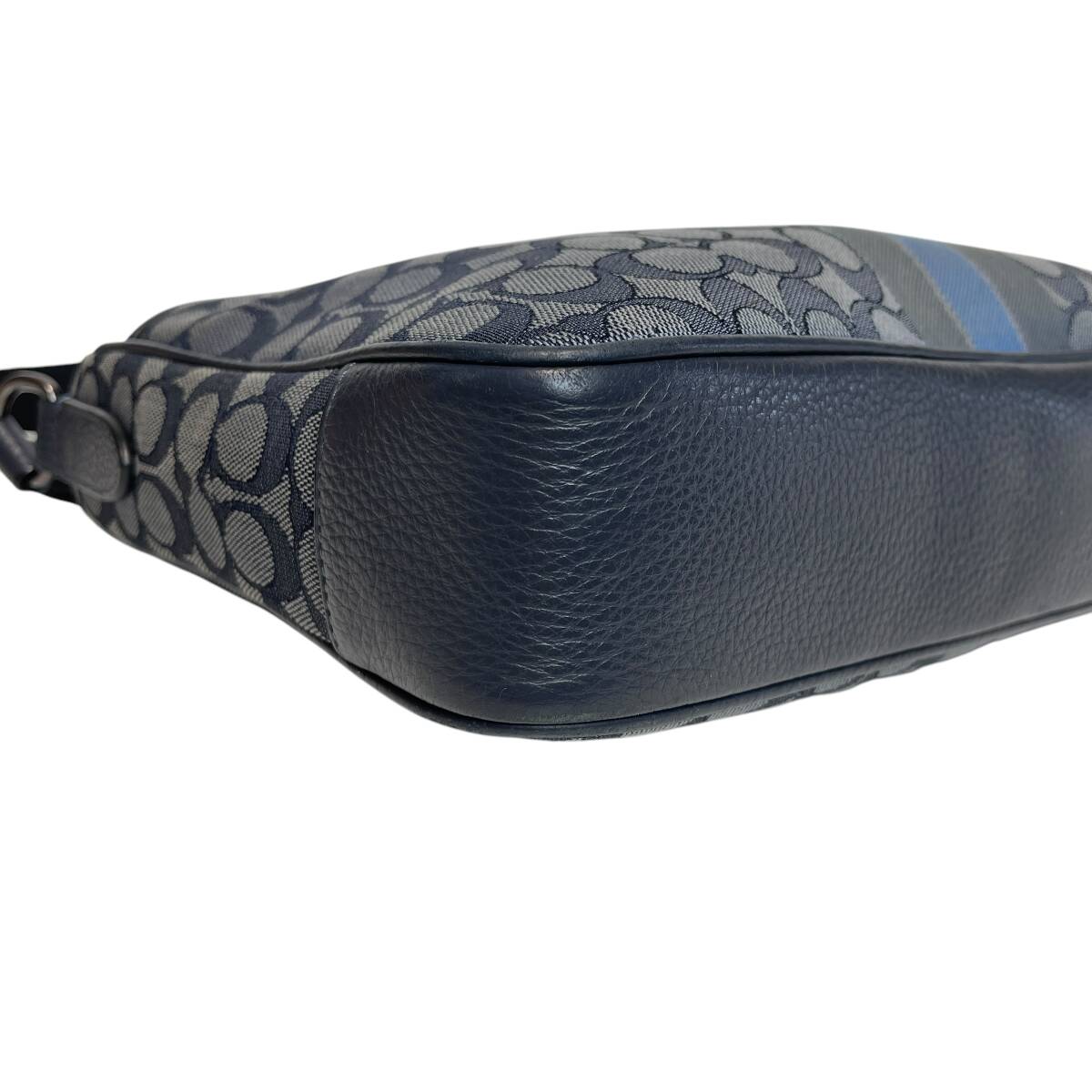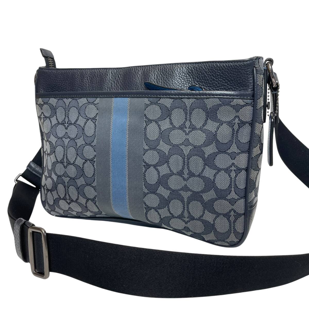 美品 COACH 2640 ショルダーバッグ ヘリテージストライプ シグネチャー キャンバス レザー シボ革 ネイビー 斜め掛け クロスボディ コーチ