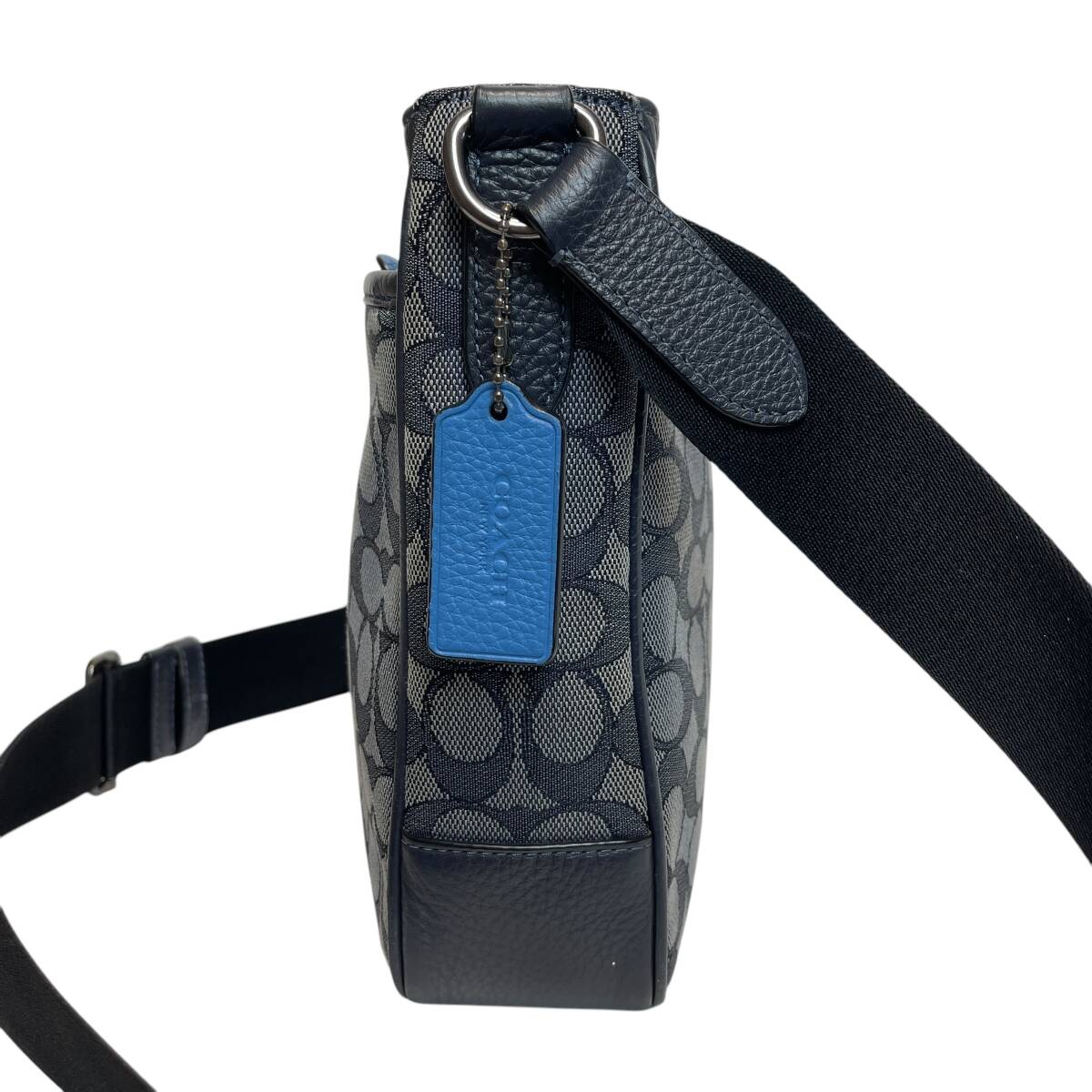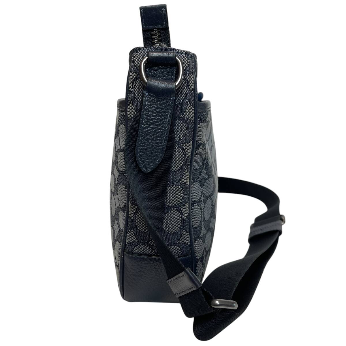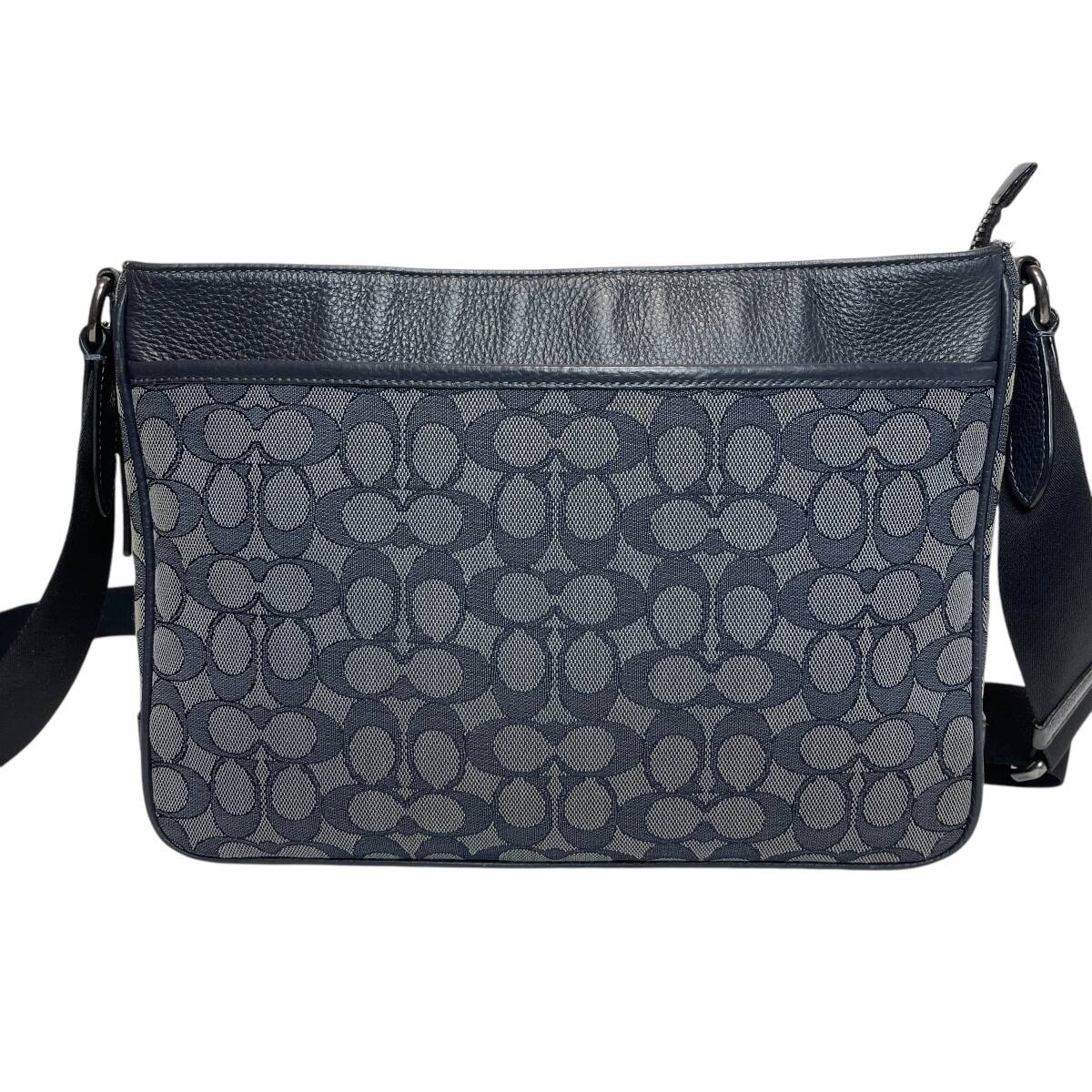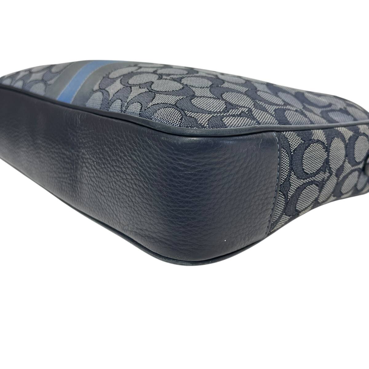 美品 COACH 2640 ショルダーバッグ ヘリテージストライプ シグネチャー キャンバス レザー シボ革 ネイビー 斜め掛け クロスボディ コーチ