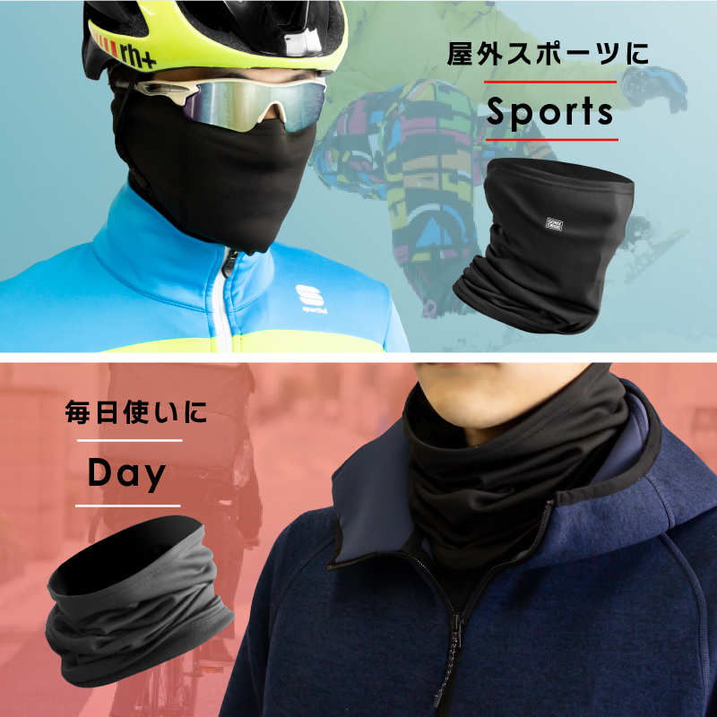 スポーツなど冬の冷たい雨風からガードする高機能な2wayハーフバラクラバ。 |
