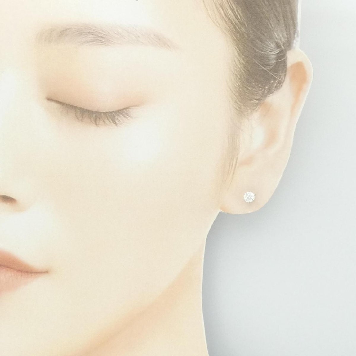 光を受けて、まばゆいほどの輝きを放つ一粒ダイヤモンドのピアス。時を超えて愛される、シンプルながらも存在感のあるジュエリーです。