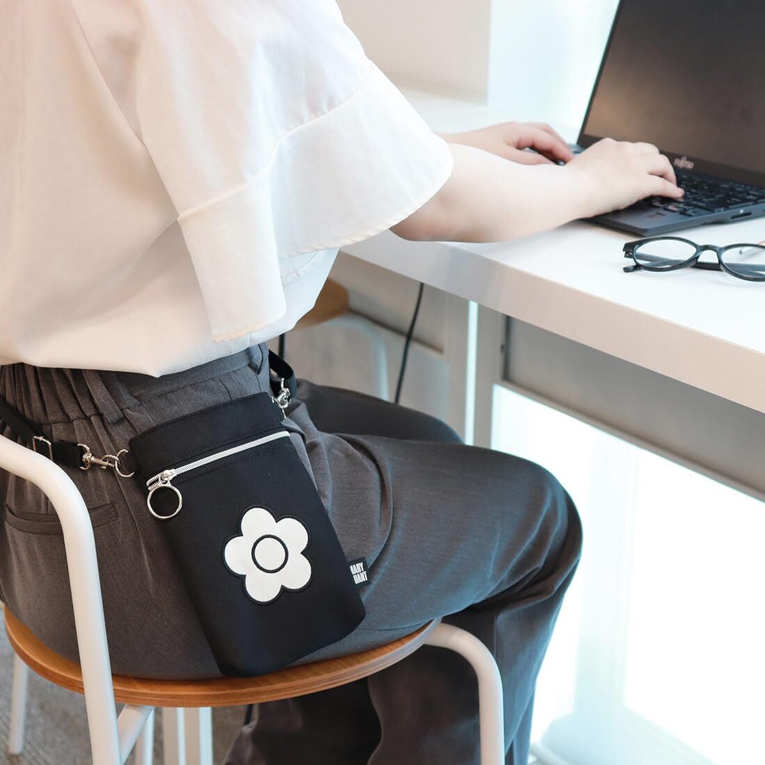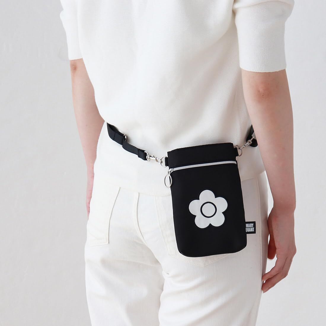 【MARY QUANT ショルダーポーチ】アイコン“デイジー”がポイントのシンプルなデザイン。コンパクトなサイズのショルダーポーチです。いつもの服にポケットをプラスする感覚で気軽に使える便利なポシェットは、ベルトの長さを調整することで、ウエストポーチにもショルダーポーチとしても活用できる2WAY仕様です。