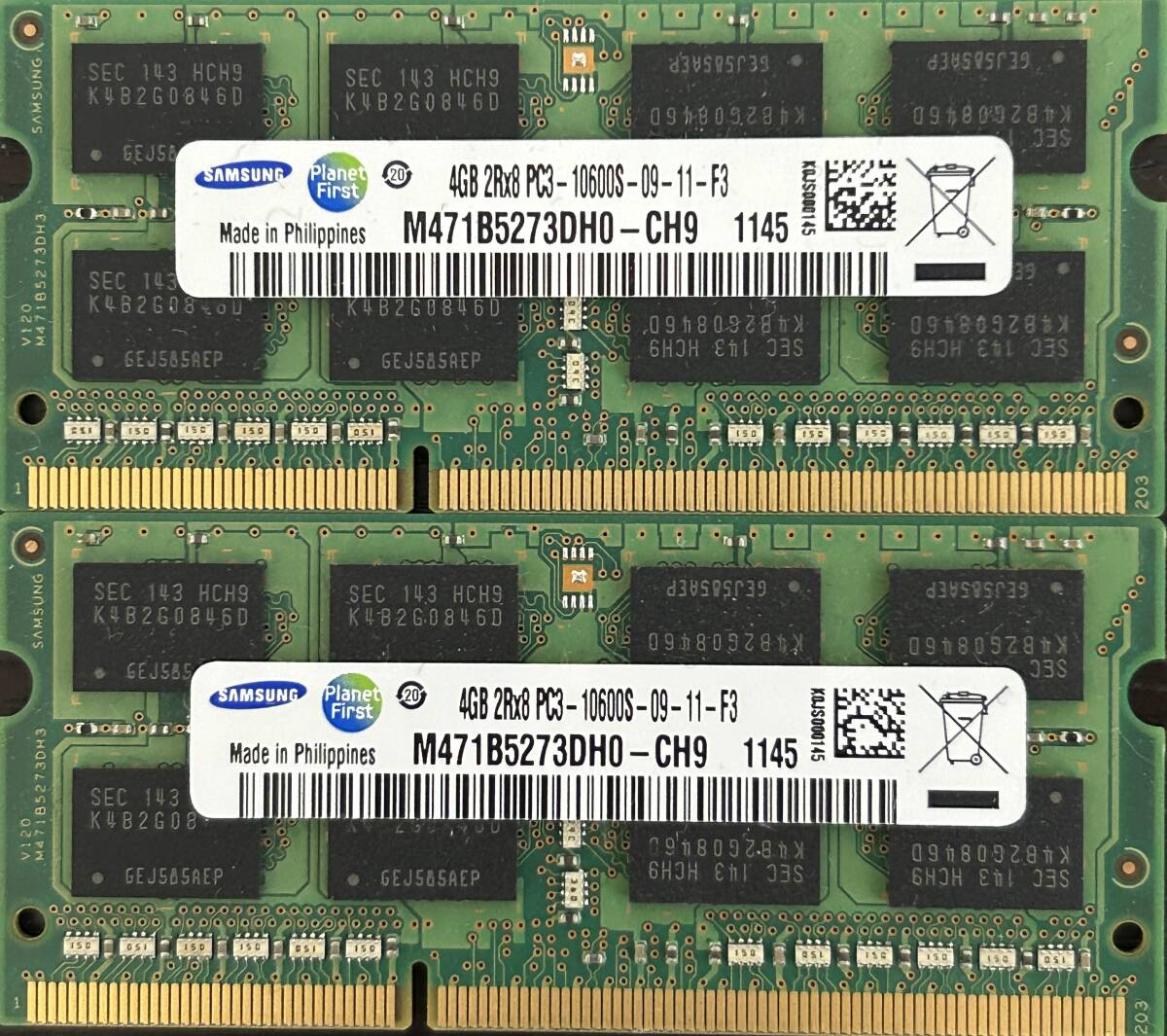 即決 動作確認済み SAMSUNG サムスン SO-DIMM 204pin DDR3 PC3-10600S 4GB×2枚 ノートパソコン用   716