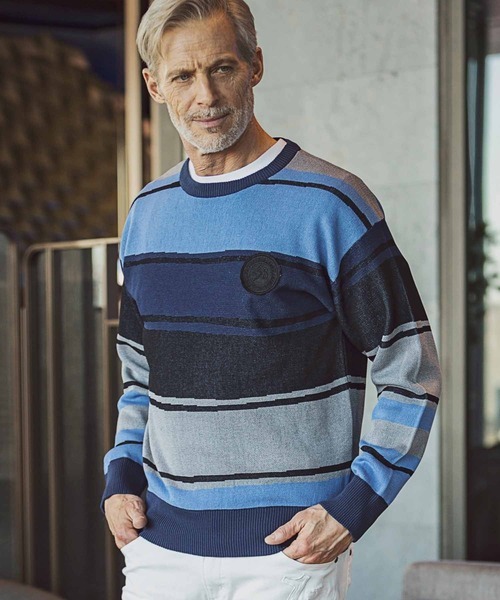 キーワード:セーター ニット メンズ クルーネック ボーダー 長袖