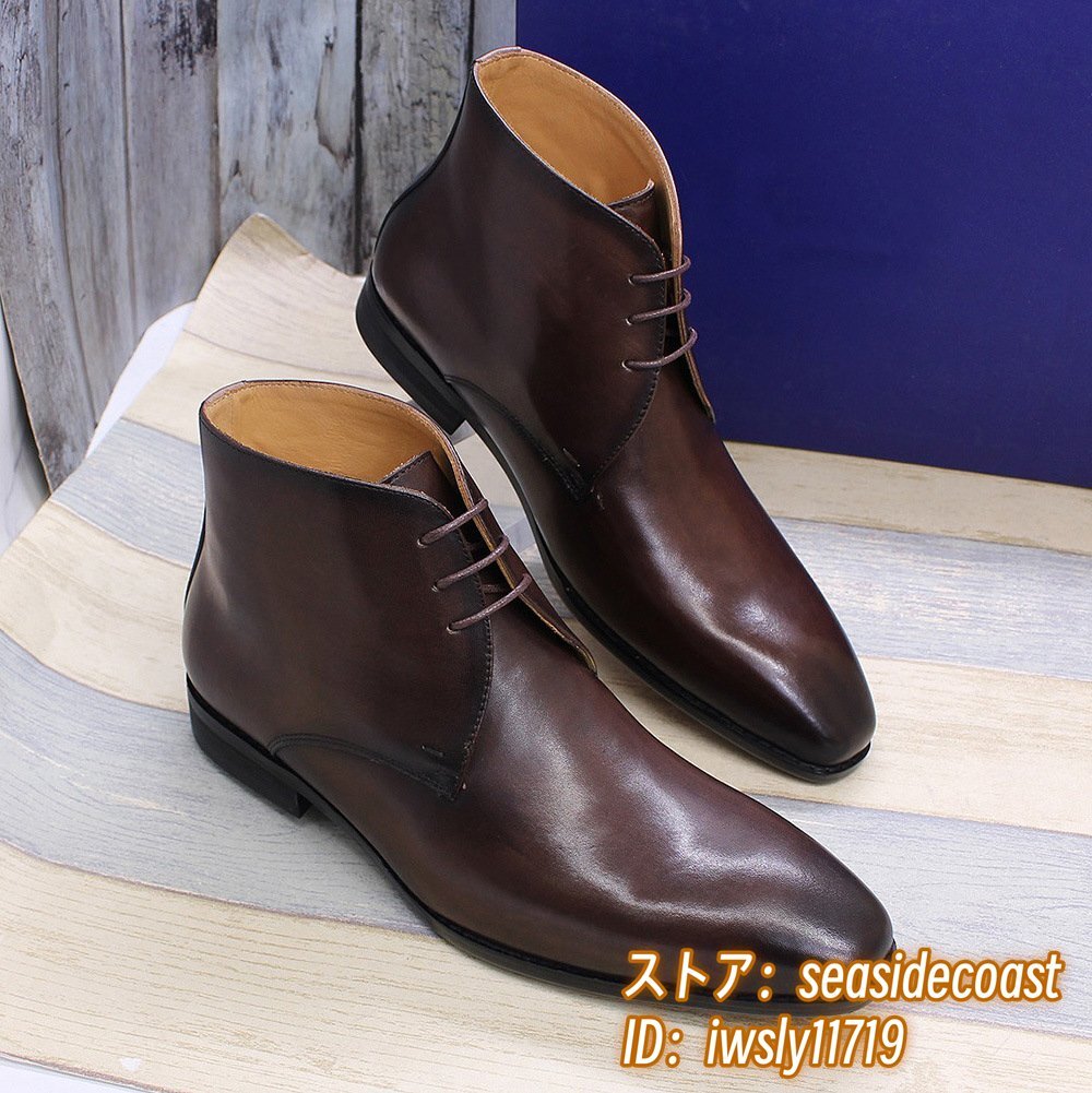 超希少*定価13万 マーティンブーツ レザーブーツ 本革 職人手作り ショートブーツ イギリス風 牛革 エンジニアブーツ 皮靴 珈琲色 25.0cm