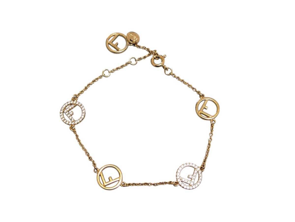 フェンディ ブレスレット F is FENDI エフ イズ フェンディ ゴールドメタル ジルコン アクセサリー イタリア製 レディース