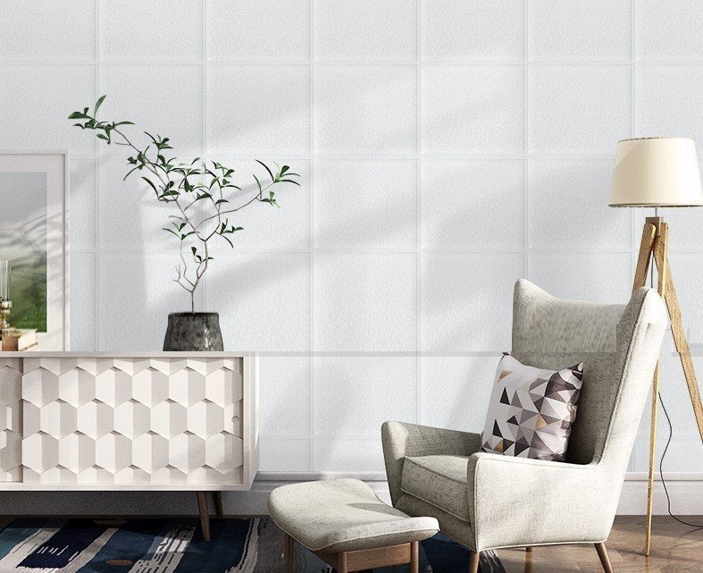 【30枚】高品質 3D クッション 壁 シール スクエア×白 レザー タイル調 糊付き リメイク 70×77cm 耐水 抗菌 傷防止