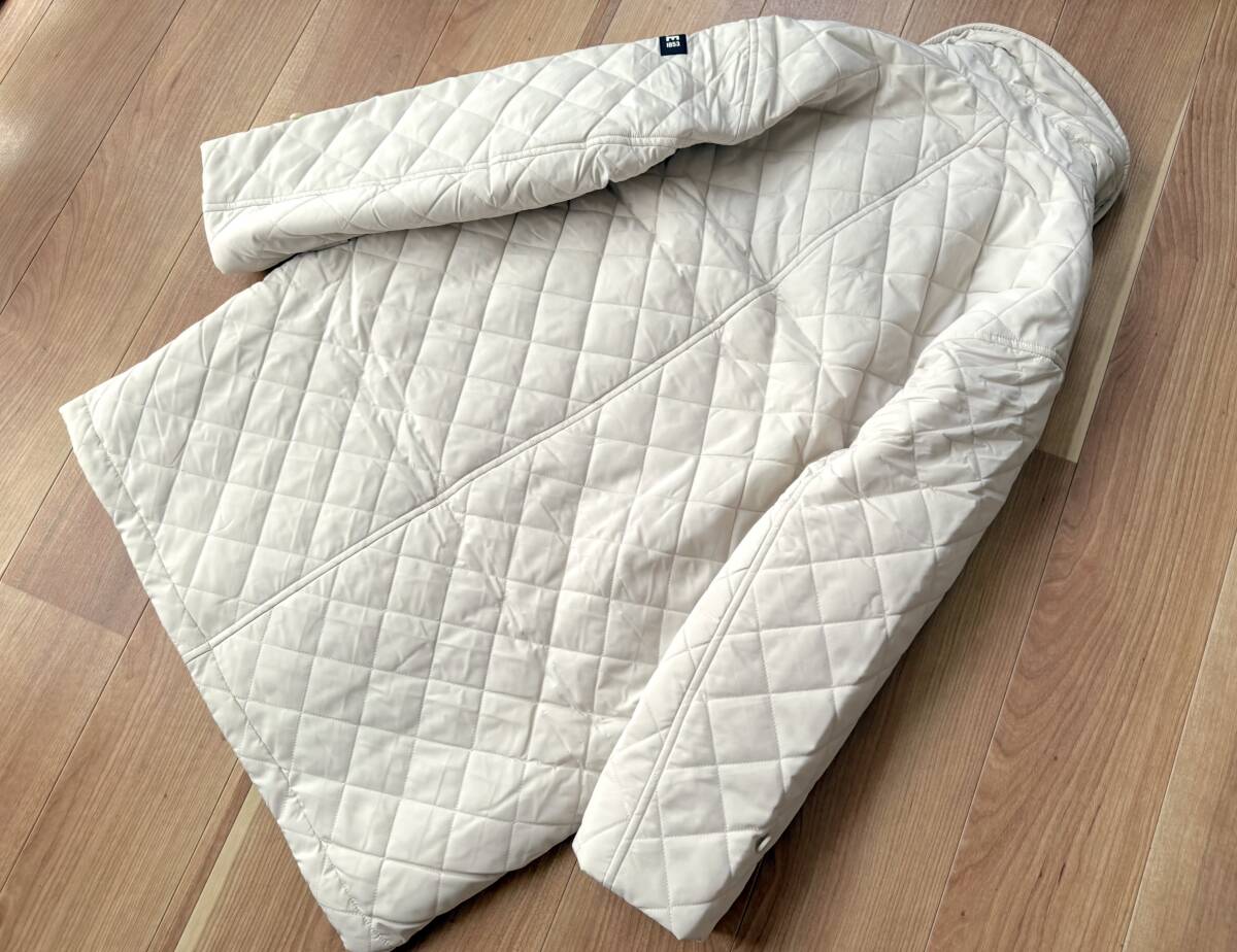 環境に配慮したリサイクルポリエステル100%仕様のキルティングコートです。