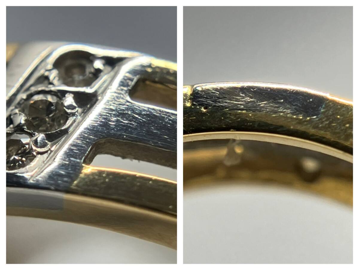 サイズが6号より若干小さめです。 全体的に細かな傷がありますので、併せて画像でご確認ください。 ※サイズ直しは受け付けておりません。 ※石につきましては鑑別しておりませんのでご了承ください。 ※カラーストーンに特有のインクルージョンがある場合がございます。 | ||||||