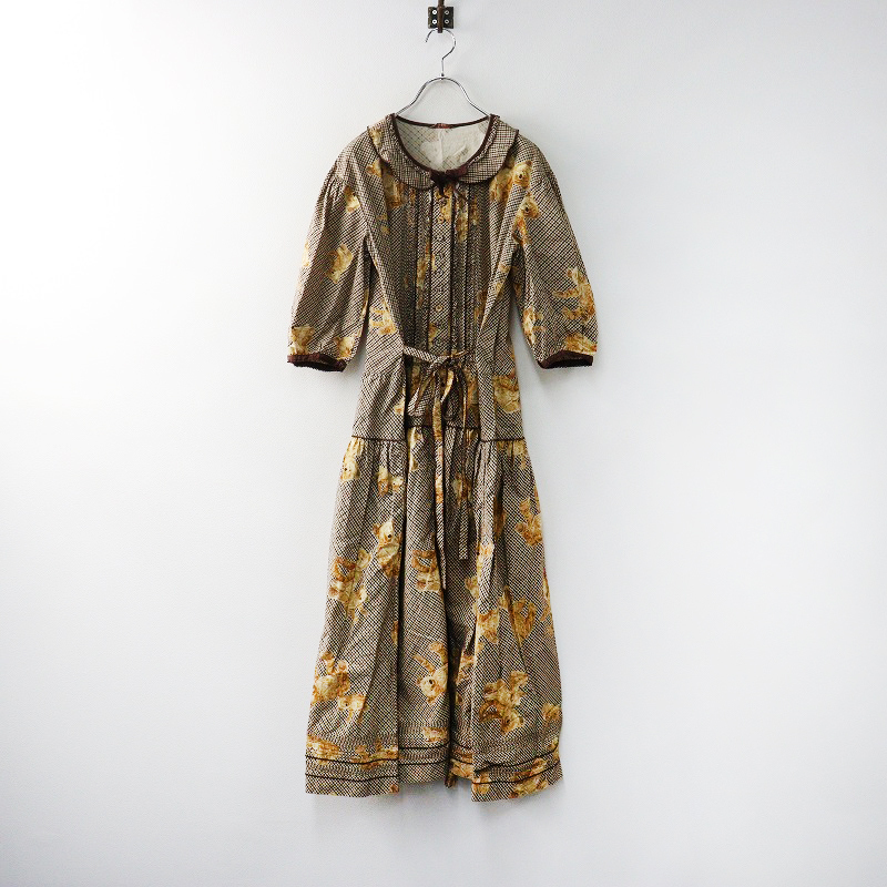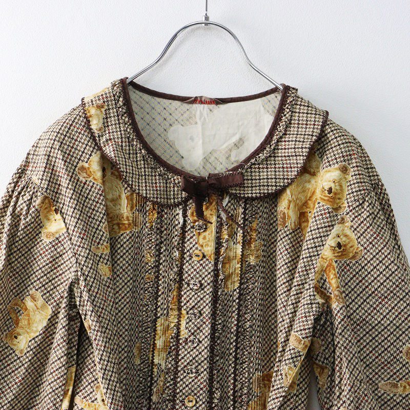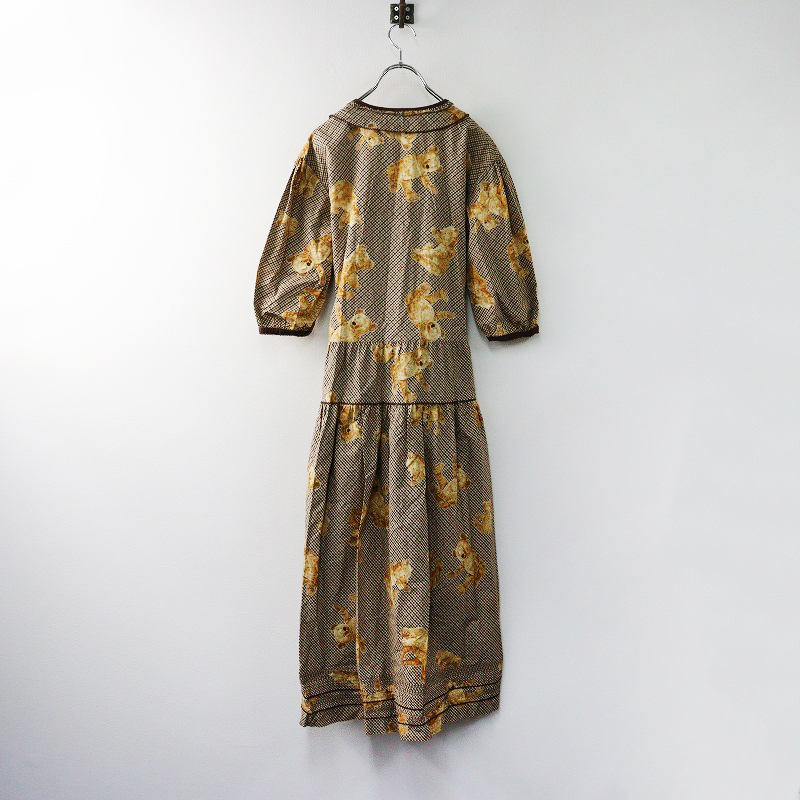 ピンクハウス PINK HOUSE ハウンドトゥース テディベアプリント ワンピース‖ベージュ ドレス ピコフリル 前開き【2400014599329】