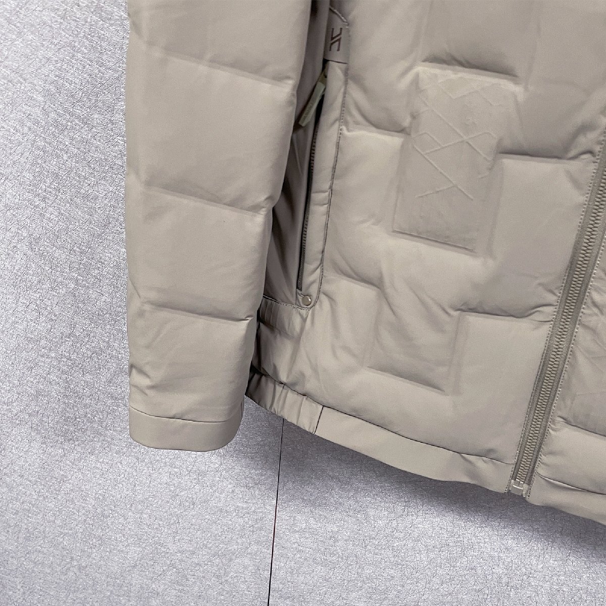 詰め物は上品な白いダックダウンを入れ、柔らかくふわふわで防寒保温性に抜群です!タンポポの綿毛のようなダウンを90%も使用する事で抜群の軽さそして柔らかさを実現。柔らかくて保温性に優れている、真冬の寒さにも耐えられる温かさを維持したダウンジャケットです。