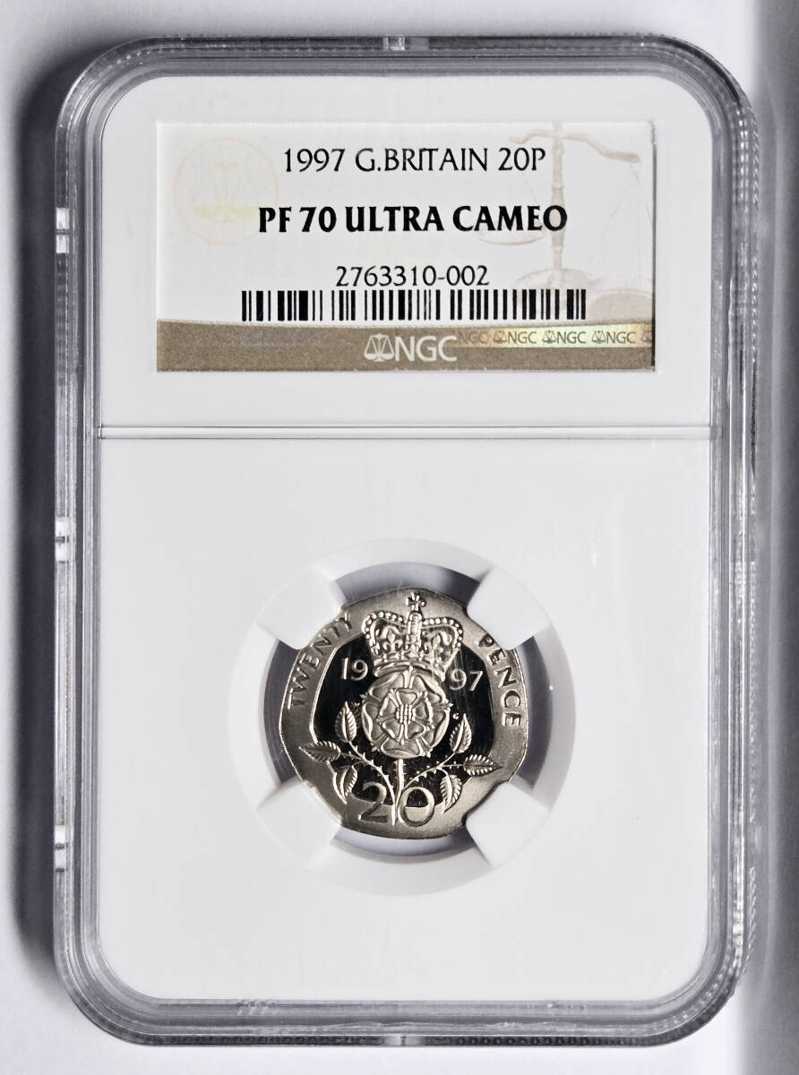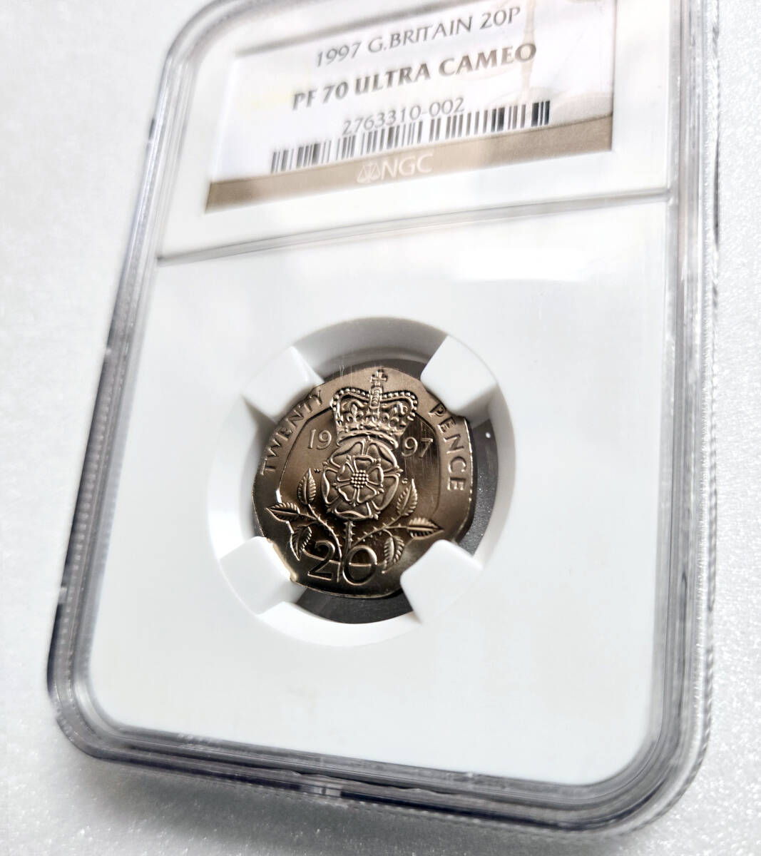 このたびは、数ある商品の中からご覧くださいましてありがとうございます。 【商品概要】 等幅曲線七角形(ヘプタグン)の形状。 表面にはエリザベス二世の肖像、裏面にはイングランドのバッジである〈王冠を戴くチューダー・ローズ〉を配し、デザインはウィリアム・ガードナーによるものです。 伝統の花章は、ランカスター家とヨーク家の統合を象徴し、現代の貨幣にも英国の歴史と 統一の精神を映し出しています。 【コイン仕様】 「1997 G.BRITAIN 20P PF70 ULTRA CAMEO」 直径:約21.4mm 重量:約5.0g 素材:キュプロニッケル 形状:等幅曲線七角形 裏面図案:王冠付きチューダー・ローズ。 ※チューダー・ローズとは、ランカスター家の赤バラとヨーク家の 白バラの統合を象徴する「統一のバラ」。 王冠を戴いたデザインは、王権と国の繁栄を表しています。 表面図案:女王エリザベスII世の肖像。 鑑定:NGC PF70 ULTRA CAMEO top pop ※NGC鑑定で完全無欠のスーパージェム・プルーフ。 これより上のグレードは存在せず、トップポップ(最高評価)。 NGC鑑定のトップポップ、わずか9枚のうちの1枚です。 流通用とは異なり、プルーフ仕上げによる鏡面の美しさが特徴です。 ※鑑定結果の調べ方 NGCで鑑定されたコインはNGCのサイトで鑑定番号を入力すると、 このコインに関する情報が見られます。 https://www.ngccoin.com/certlookup/2763310-002/70/ 【商品の特徴】 ・スラブ入り(鑑定済)=本物であることの証明。状態が保証されています。 ・資産性と美術としての価値の両立。 ・コレクション・贈り物にも最適:記念日や特別な日のプレゼントとしても人気 【スラブケース状態について】 スラブケースには微細なスレやキズが見られる場合があります。 これはコイン本体の鑑定結果やグレードには一切影響いたしません。 あくまで保護ケース表面の状態であり、コインの価値や真贋には問題ございませんのでご安心ください。 【発送・梱包について】 ・丁寧に梱包と迅速な発送をさせていただきます。 ・送料は無料です。 ・商品の発送はヤマト宅急便コンパクト(上限3万円(税込)の補償あり・追跡サービス利用可能)となります。 【今後の取引について】 落札後は取引ナビにしたがって、必要事項の確認をお願いします。 指定の決済方法での入金が確認できましたら、商品を発送させていただきます。 【返品・返金】 コインの真贋確認について: アメリカの第三者機関格付会社「PCGS」および、「NGC」スラブ入り鑑定済コインを主に扱っております。 万が一公的鑑定機関にて贋物とされた場合、返品・返金の対応をさせていただきます。 また、ご注文と異なる物や画像で見た物と著しく異なるなどあった際は返品・返金の対応をさせていただきます。 取引ナビからご連絡ください。 【出品者よりお礼】 歴史を手にする喜びと、資産としての価値を兼ね備えた一枚。 この機会にぜひご検討ください。 他にも出品しておりますのでこちらよりご覧ください。 それでは気持ちの良い取引をお待ちしております。 | |