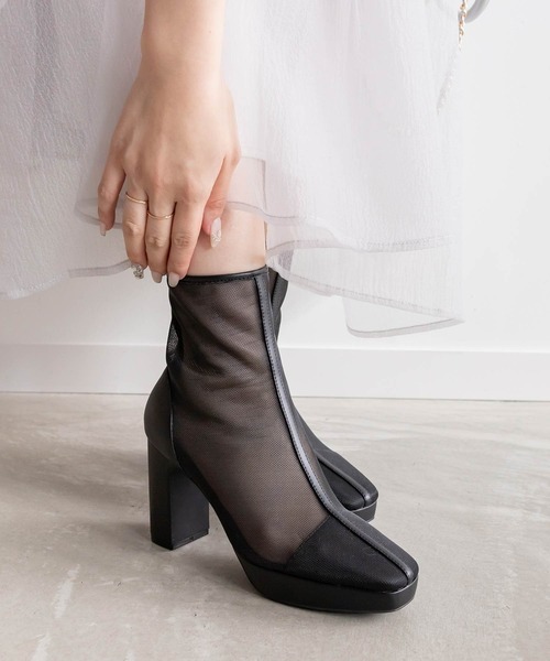 キーワード:ブーツ レディース ショート チャンキーヒール ハイヒール 秋 冬