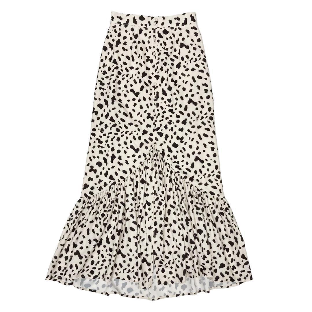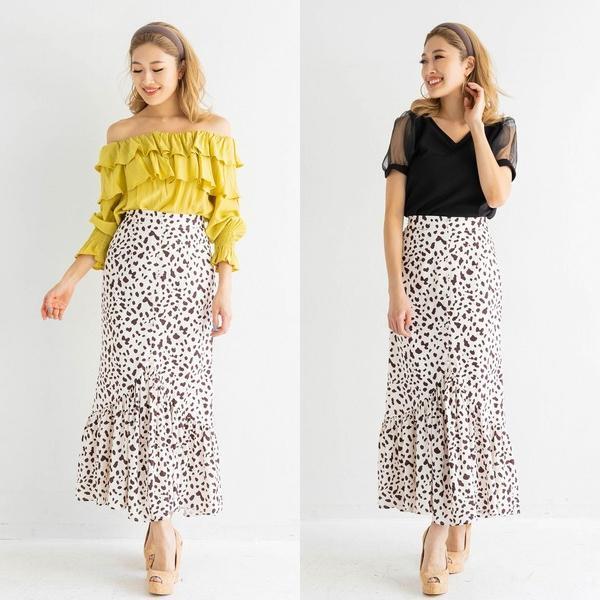 主役級のインパクトを放つダルメシアン柄を落とし込んだ、女性らしくしなやかなシルエットを演出するマーメイドスカート。落ち感のある柔らかな生地で肌触りも心地よく、シーズン問わず長く愛用できるのも魅力です。甘すぎない着こなしで、大人顔の洗練スタイルが楽しめます。
