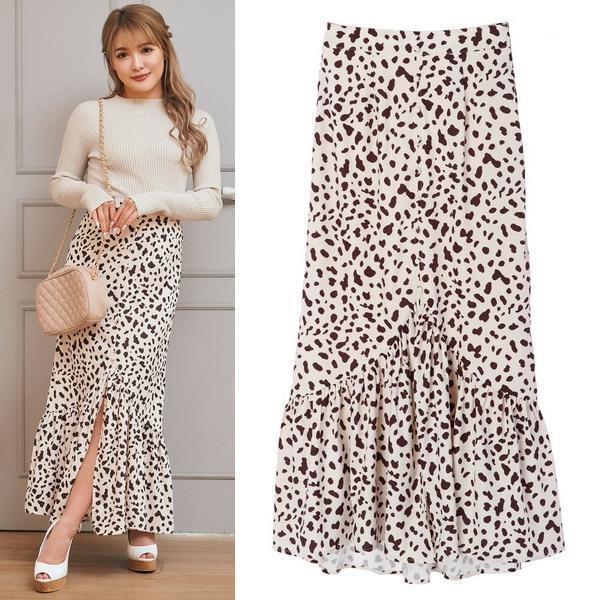 DURAS デュラス ダルメシアン柄マーメイドスカート ベージュ