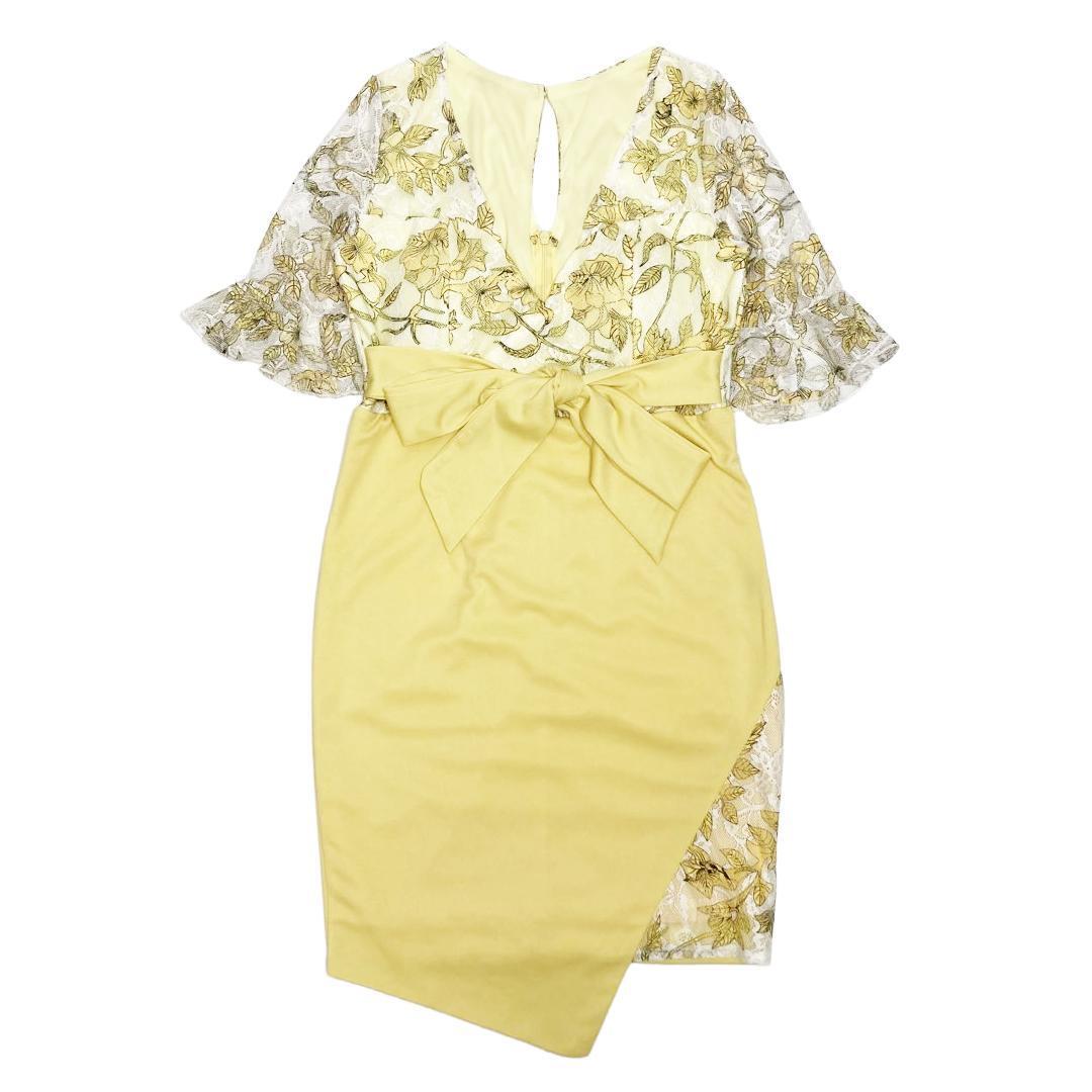 DAZZY デイジーストア アートフラワーフレアスリーブタイトミニドレス