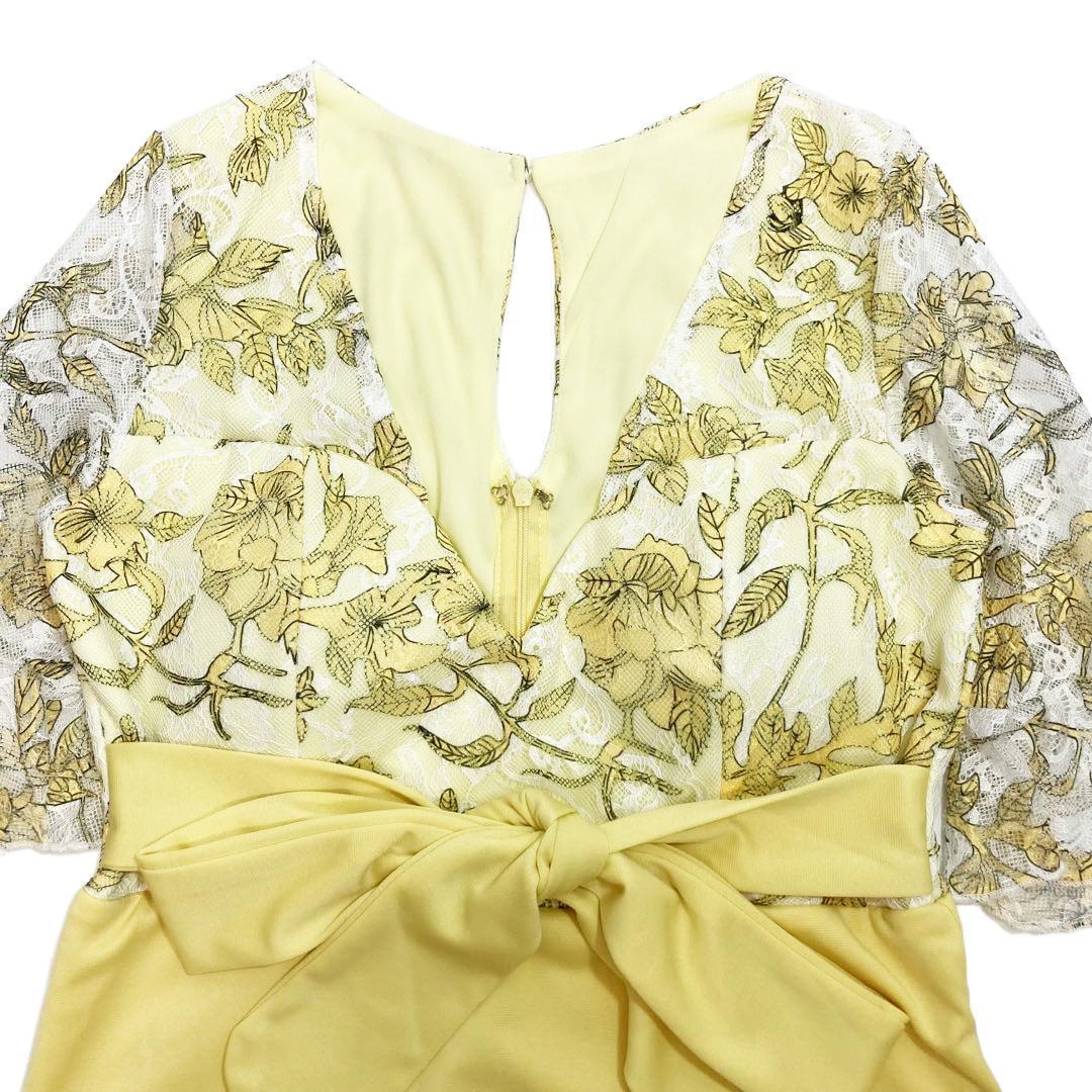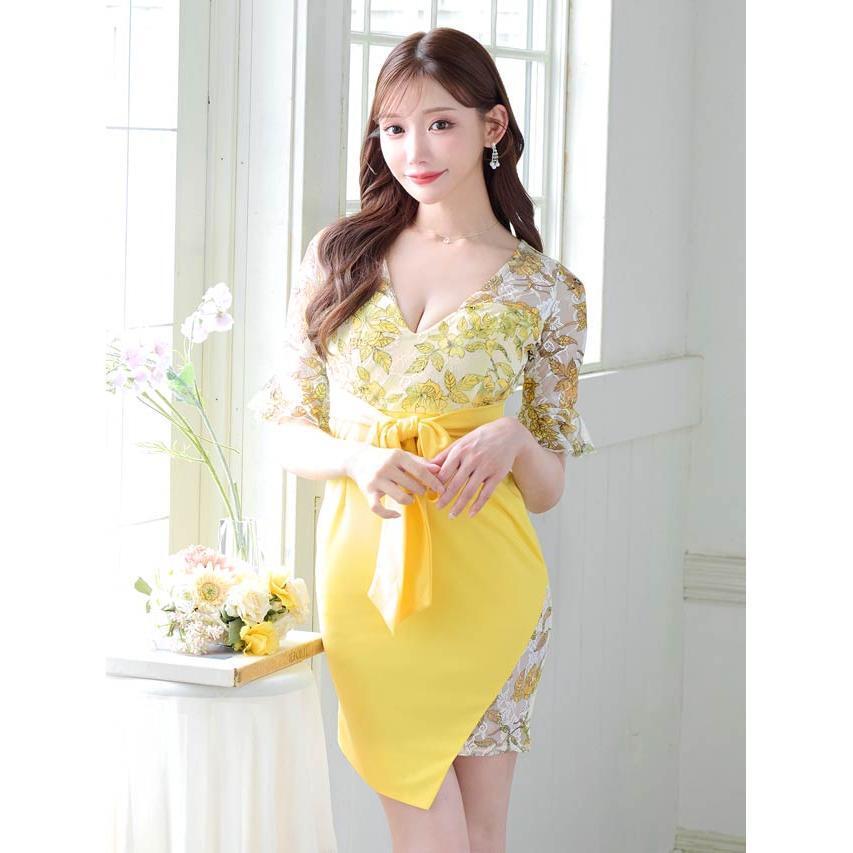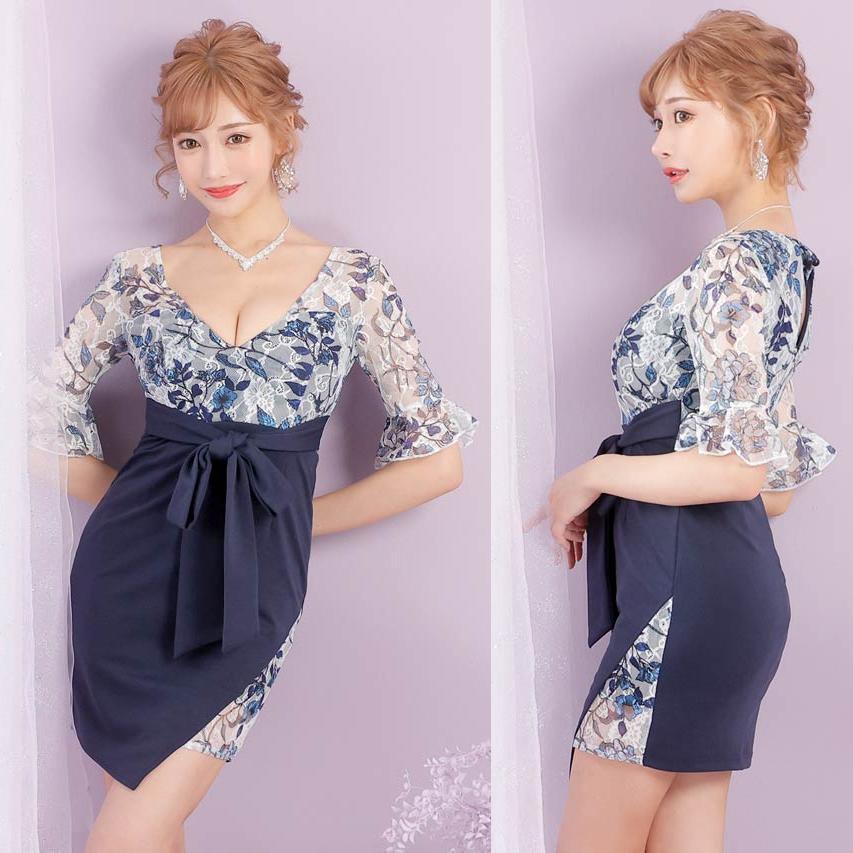 透明感溢れるホワイトレースに鮮やかなフラワーをデザインした大人っぽドレス。