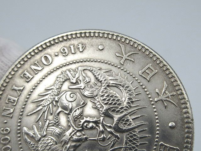 ◇銀貨◇ 一圓 銀貨 一円 明治三十八年 明治38年 大日本 龍 竜 重量約26.89g 長期保管品 管理番号:35500/H5S1 *付属品* 無し ※画像に無いものはお付けしません。 *サイズ(約)* ・直径 3.7cm ・厚み 0.3cm ※素人採寸の為、誤差有。 *重量(約)* ・26.89g ※素人計量の為、誤差有。 【状態】 店舗買取品/保管品/中古になります。 傷・擦れ・汚れ・黒ずみ・変色・くすみ・ 縁の削れ・劣化・その他ダメージがあります。 詳しい状態は写真でご確認下さい。 ※商品の状態の説明はあくまで出品者の主観に基づいた説明です。 ※店舗保管品です。 ※新品の様な完璧な状態では御座いません。 ※ご理解頂ける方のご入札をお願い致します。 ご入札前に必ず全文をお読みになり、 お客様が十分にご納得された上でのご入札、 ノークレーム・ノーリターンでお願い致します。 入札の取消は行っておりませんのでご注意下さい。 (ご入札された時点で同意頂いたものとします) ※画像のものがすべてになります。 ※店舗保管品の為、多少のスレキズ等ある場合が御座います。 ※専門知識が無いため質問にお答えできない場合が御座います。 ※素人検品・撮影の為写真に写り切らない汚れ・キズがある場合が御座います。 ※新品の様な100%完璧な状態では御座いません。 ※念入りに検品しておりますが見落としがある場合が御座います。 ※神経質な方、完璧をお求めの方は入札をお控え下さい。 ※御理解頂ける方のご入札をお願い致します。 ※当店はまとめてお取引には対応致しません。 全て単品でのお取引となります。 ※同梱は行っておりません。 ※商品管理上、取り置きは致しませんのでご了承下さい。 | |||
