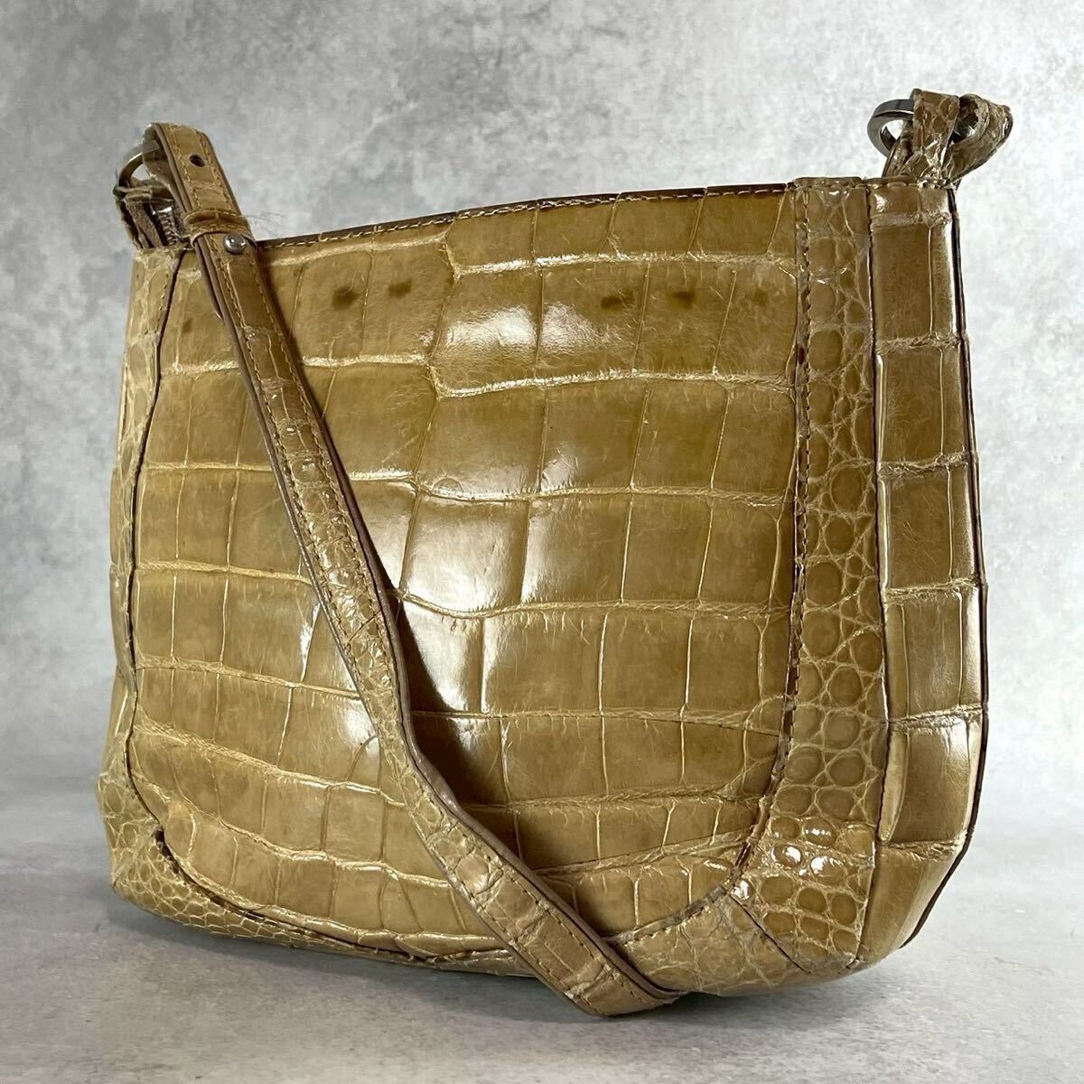 【JRA認定 極上】斜めがけ◎ クロコダイル ショルダーバッグ ボディ サコッシュ シャイニング センター取り ワニ メンズ ビジネス