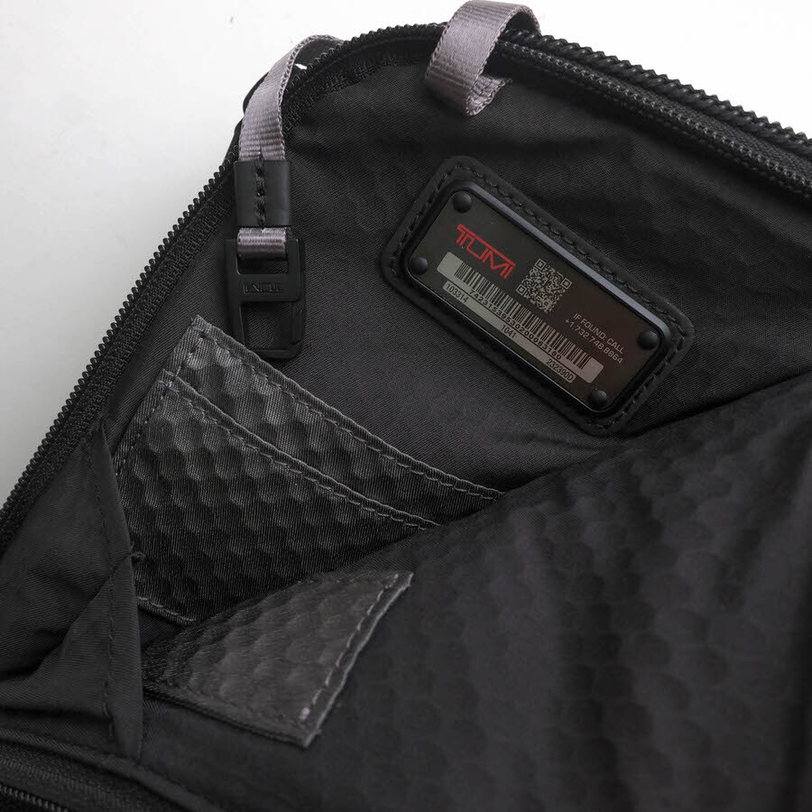 TUMIの耐久性に定評のあるオリジナル素材「バリスティックナイロン」を使用し、ブラックレザーとガンメタルジッパーで洗練されたデザインを実現したスリムブリーフ。15インチまでのラップトップが収納可能なポケットを備え、バッテリーやイヤホンなどの収納に便利なメディアポケット、ダブルファスナー式開閉、その他に豊富なポケットがあり、オーガナイザーポケットにはカードスロットやペンポケットが整理されており、キーリーシュも付いているため、日常使いにもビジネスシーンにも最適なモデルです。 |
