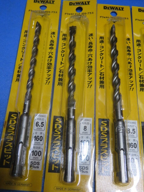 (O)DEWALT SDSプラスビット 6.5mm,8.0mm,8.5mm,10.0mm,12.0mm×160mm 5本組 送180 コンクリートドリル デウォルト