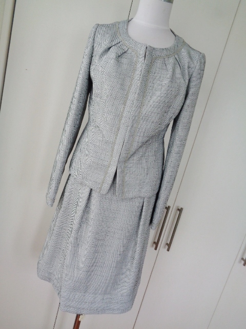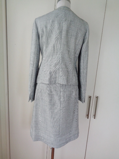 数回のみ使用。特記するような傷み、汚れは見当たりません。美品です。 ◆色 ライトグレー ◆素材 ポリエステル100 スリット糸使用 裏地 ポリエステル ◆サイズ 9R B83H91 W64 T158 ◆平置実寸 着丈51 身幅 46 肩幅38 袖丈58 スカート丈55 ウエスト34 USEDですのでご理解のうえ、ご入札ください。神経質な方や状態にこだわりのある方にはお勧めできせん。 商品はチェックはしていますが、素人ゆえ、チェック漏れのあることもあるかもしれません。 寸法も平置きで自己流で計測していますので、多少の誤差はご容赦ください。 ご心配な場合はご質問ください。落札後はノークレーム・ノーリターンでお願いします。 リサイクルをこころがけておりますので、簡易包装、梱包材も再利用のものを使用しております。ご了承ください。 よろしくお願いします。 他にも出品していますので、是非ご覧ください 0 | |||